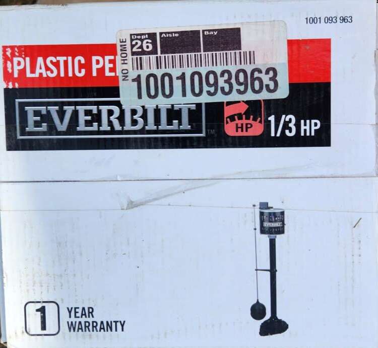 New in Box Everbilt 1/3 HP Plastic Pedestal Sump Pump. $50