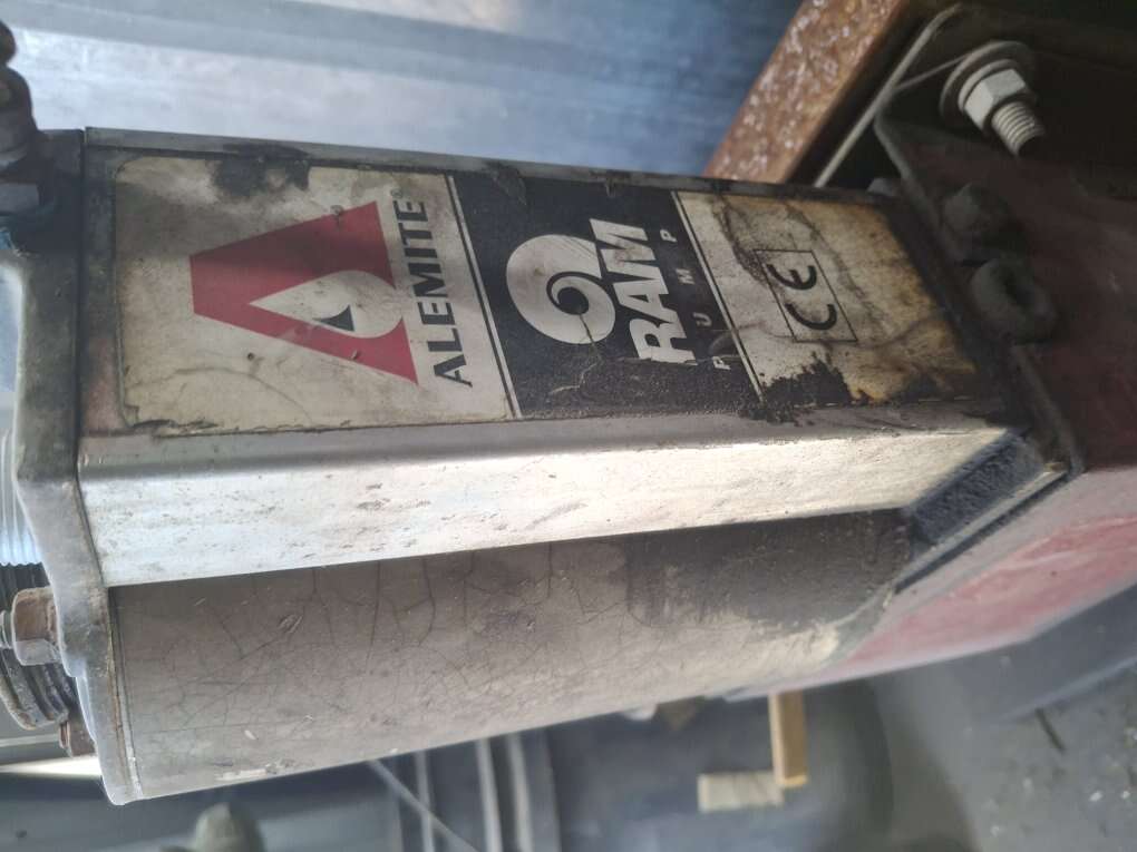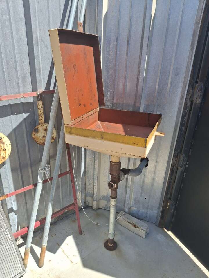 75 Gallon 17x17x60 waste oil tank with pneumatic transfer pump. Alemite air pump. tank cones with oil funnel dump.