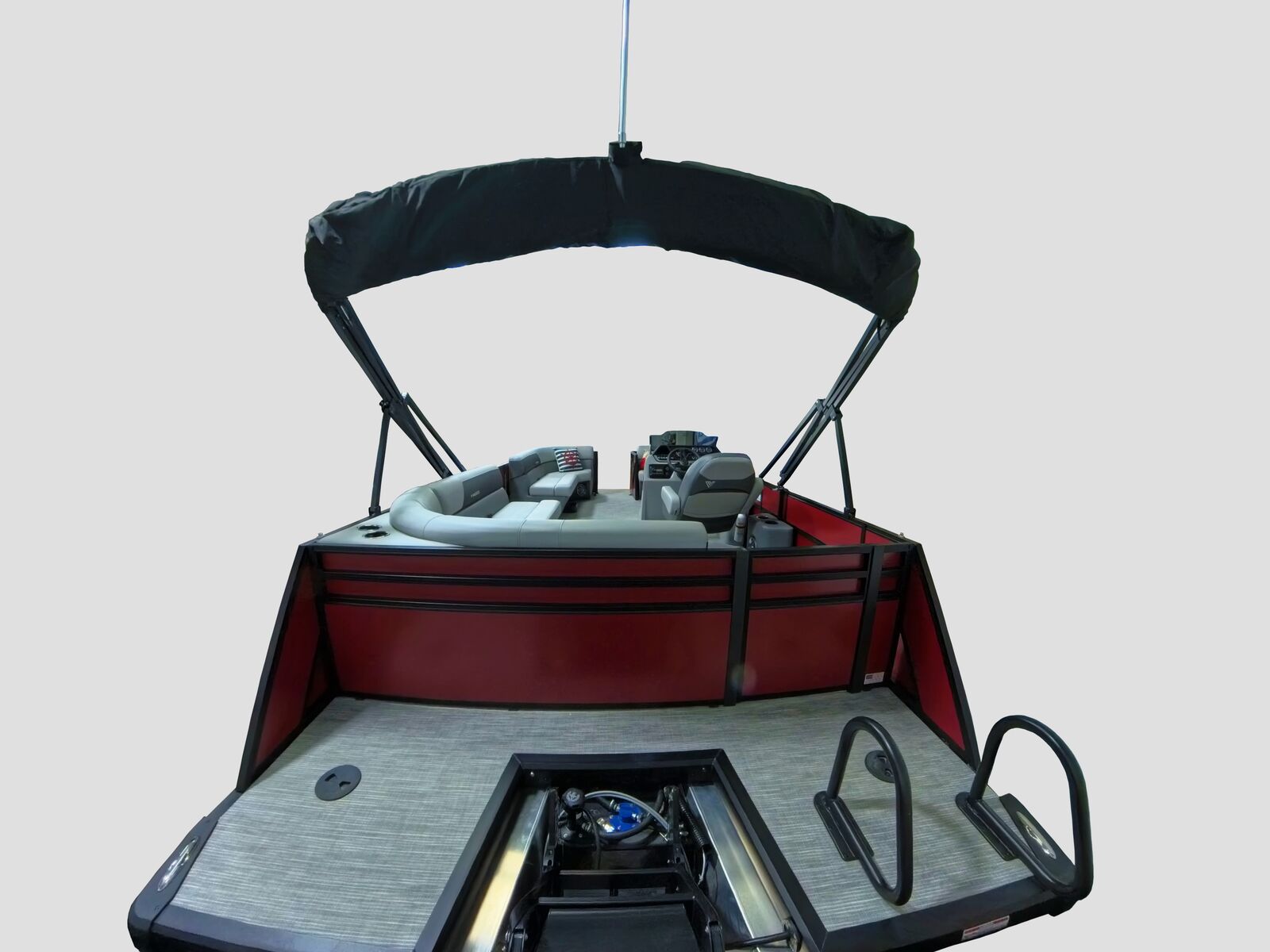 The boat also includes a 2’ extended swim deck, a stainless steel retractable ladder, a 10’ black anodized Bimini frame, and a premium black canvas crib cover with snaps to protect your investment when not in use.