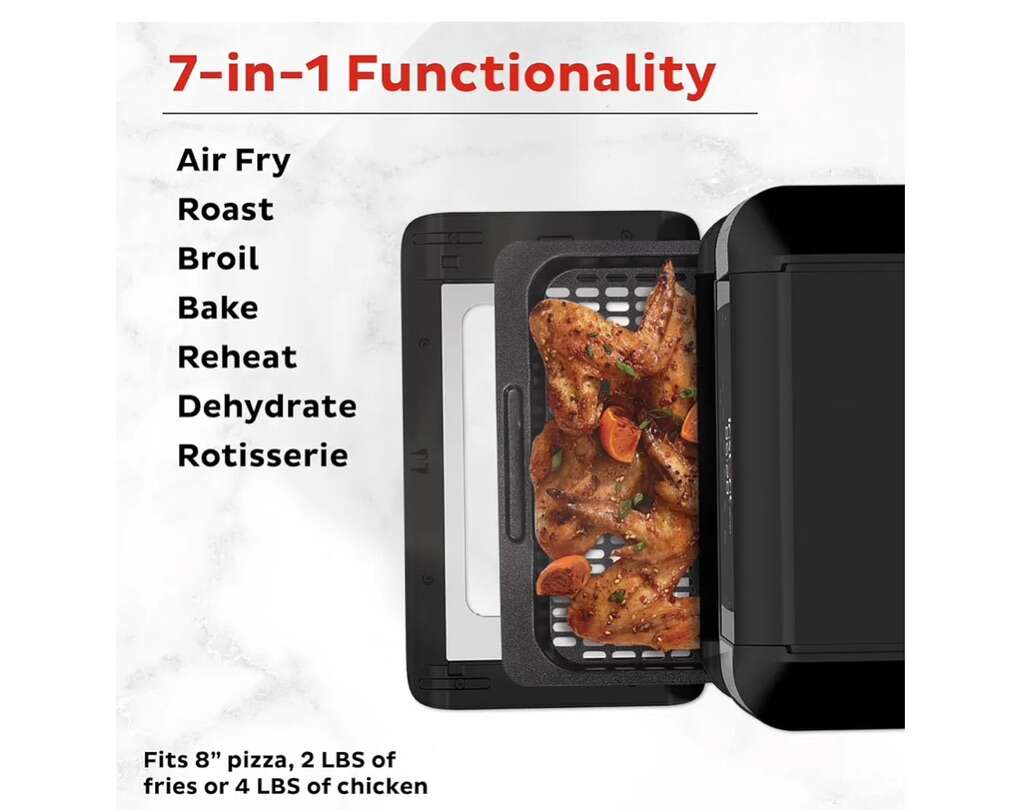 Air fry, broil, bake, roast, dehydrate, reheat, and rotisserie