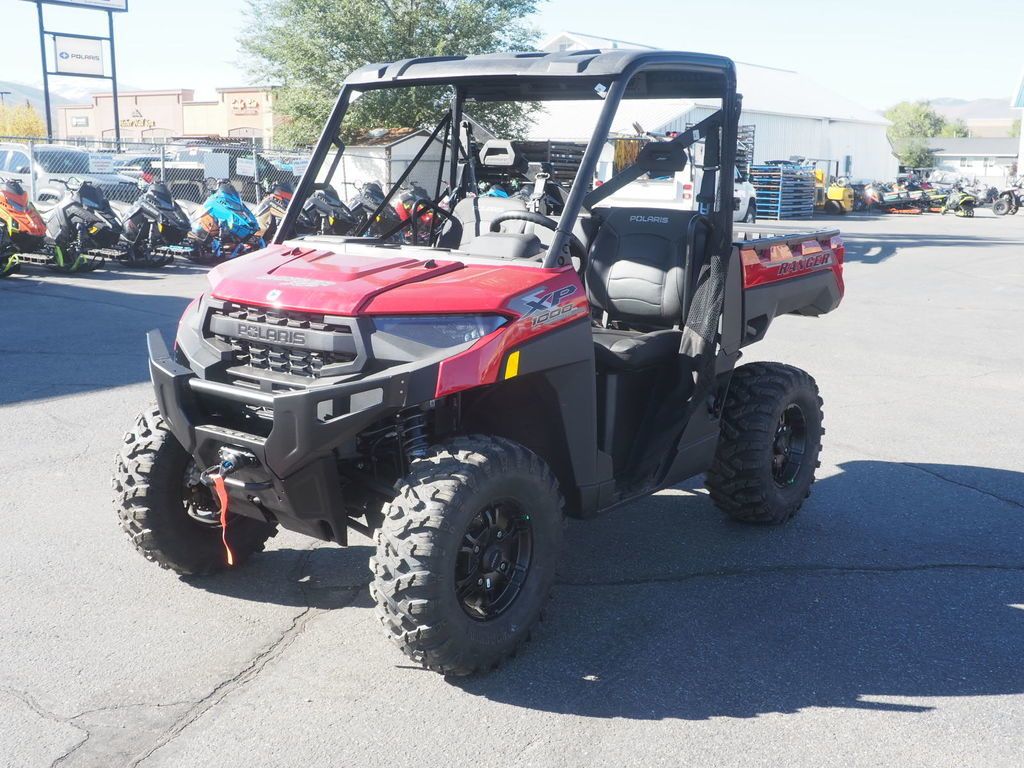 PRICE INCLUDES ACCESSORIES 2025 Polaris® Ranger XP 1000 Premium TASK TO TRAIL VERSATILITY BUILT TO WORK AND PLAY HARD Conquer tough tasks or trails with RANGER XP 1000. It sets the standard for full-size capability, so you can rule the day. Features may include: COMFORT RANGER XP 1000 is designed with your comfort in mind. You’ll appreciate the factory-installed roof, easy-to-operate cab nets, and plush, contoured seats. All-Day Comfort Get sunup to sundown comfort with a factory-installed roof, tilt steering wheel and adjustable, contoured seats with back bolsters for premium riding comfort. New cab nets offer one-handed operation for easier entry and exit. In-Cab Convenience Take advantage of easy-to-access, in-cab and underseat storage for your gear. Place essentials in the dual-integrated glove boxes and keep beverages secure with up to 8 cup holders. Plus, charge your phone with the USB charging port. Extend Your Day Work doesn’t have a curfew. LED headlights provide a bold, refined look while delivering enhanced illumination for those early morning or late-night tasks. Capability Meets Utility RANGER XP 1000 makes every task easier with thoughtful innovation and toughness. Performance With Precision Stay smooth and controlled on the job or trail, thanks to 3-position throttle control with different drive modes. Choose Performance for more response, Standard for normal throttle response, or Work for improved low-speed control. Equipped to Adapt Adapt to the terrain with three driveline modes: AWD, 2WD and VersaTrac Turf. For work around the house, use VersaTrac Turf Mode to unlock the rear differential for easier and tighter turns that won't tear up your lawn. Prepped with Pulling Power Complete the job or get back on the trail quicker, thanks to the pulling power of a factory-installed Polaris HD 4,500-lb. winch with synethic rope, autostop and wireless remote. Unload Cargo with Ease The gas-assist dump box makes unloading heavy loads from the cargo box quick and easy.