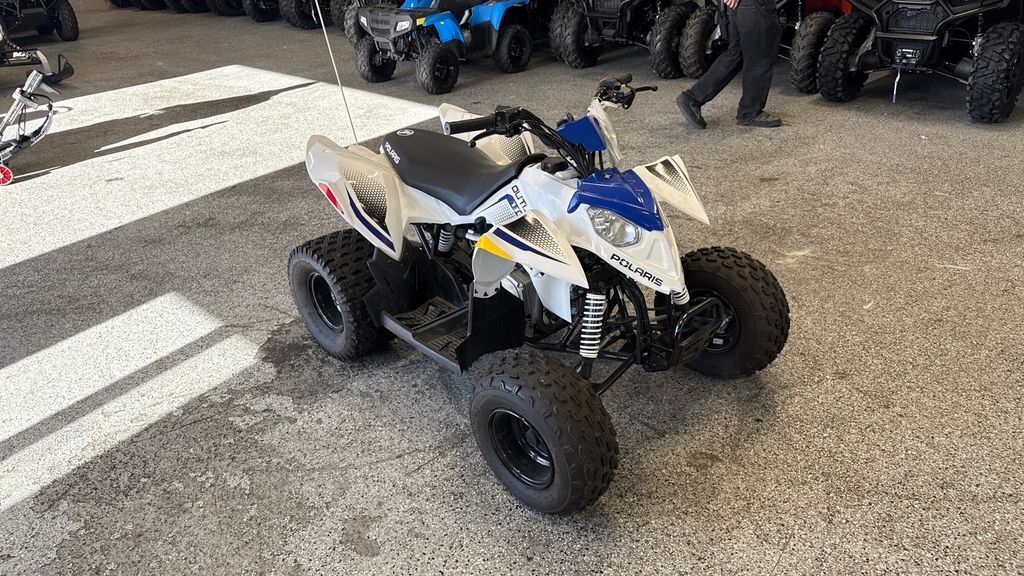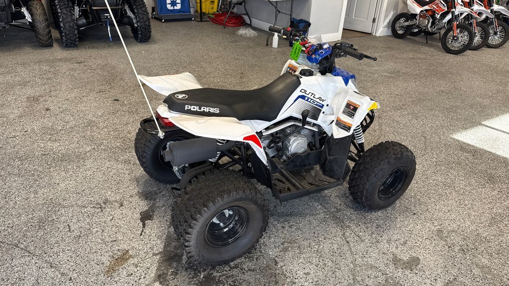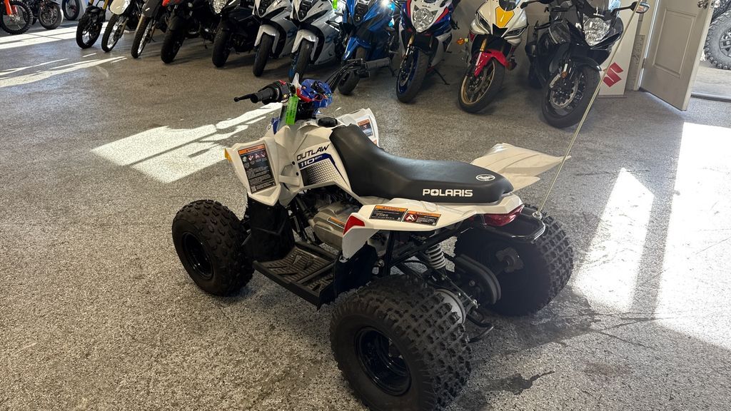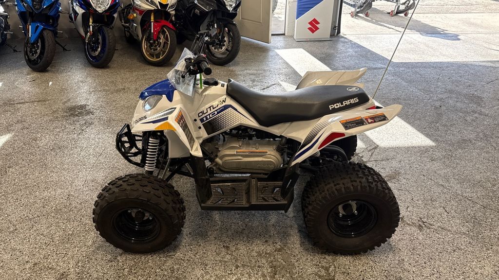 2025 Polaris® Outlaw 110 EFI Inspiring Confidence Off Road A youth ATV perfect for introducing young riders to trail riding. Engineered for safety, control and fun. Ages 10+ with adult supervision. Features may include: Control the Speed, Not the Fun Parents can adjust the machine's speed to fit their kid's skill level and comfort. LED Lighting Improved visibility, front and rear, to see and be seen. Stop with Confidence Built with reliable drum brakes for easy, efficient stopping. Includes handlebar-mounted parking brake. Smooth Starting Both kids and parents will love the improved cold-starting reliability and consistent performance of electronic fuel injection (EFI). Comfortable Riding Ride in comfort with 5" of front and 6" of rear suspension travel. Take on the Trail Featuring 19" front tires, and 18" rear tires for traction, stability and handling.