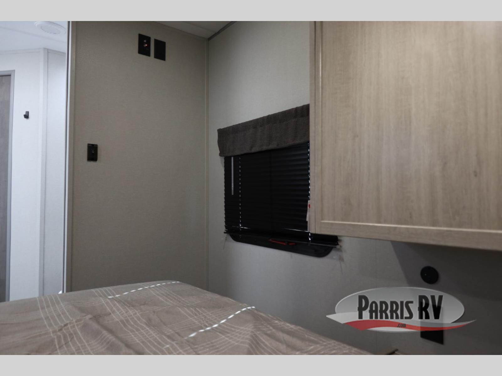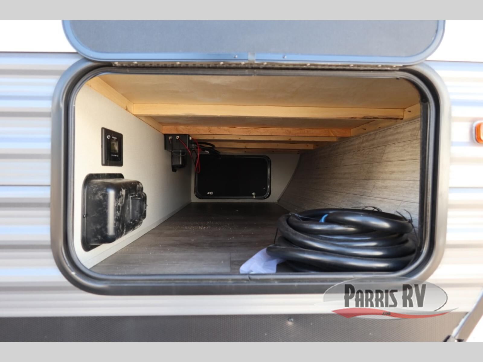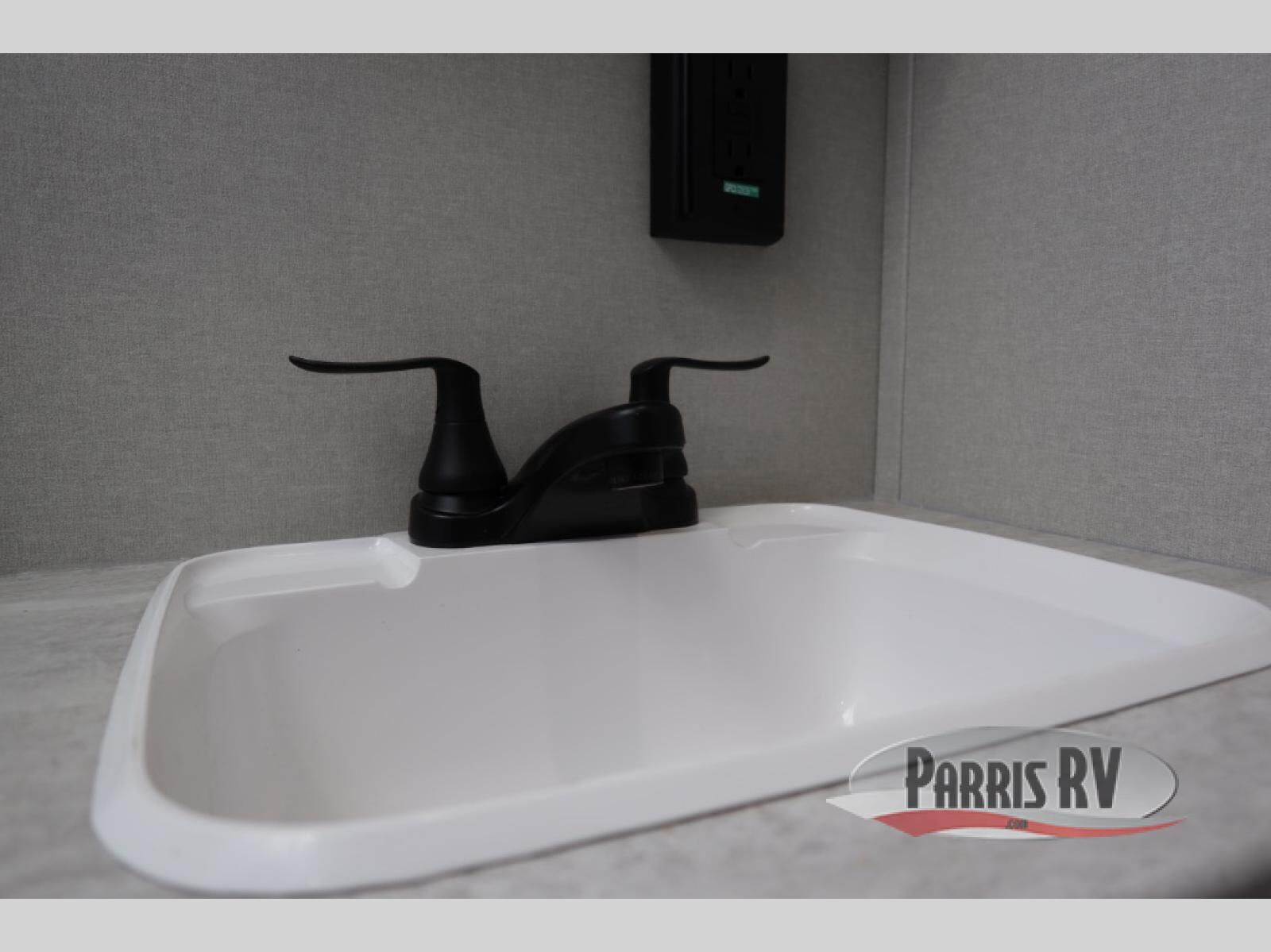 You're bound to love every minute spent in this spacious travel trailer! The rear covered porch includes an exterior entry door here and a patio door to give your unit a more residential feel. There is a sofa that can be switched out for optional theater seating, a U-shaped dinette within the large slide, plus two bar seats at the kitchen counter so everyone has a place to relax. A spacious walk-through bathroom will create a front master bedroom with a 60" x 74" queen bed, dual wardrobes, plus your own exterior entry door for convenience!