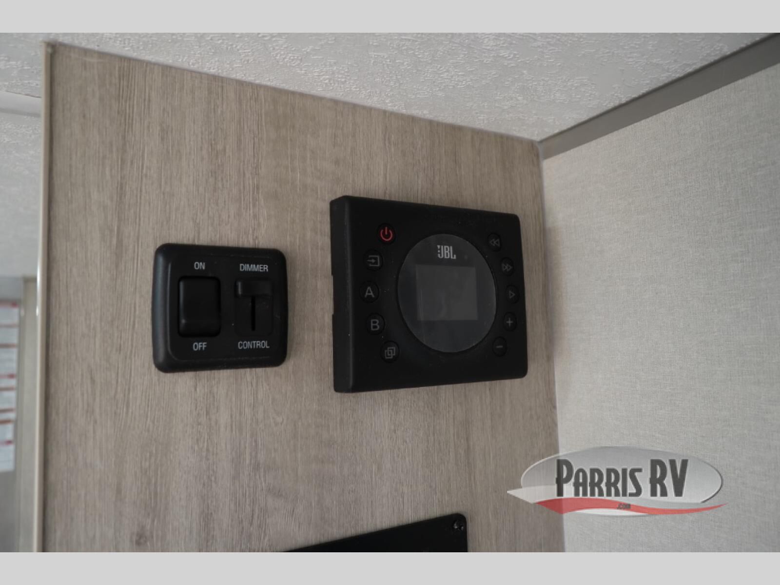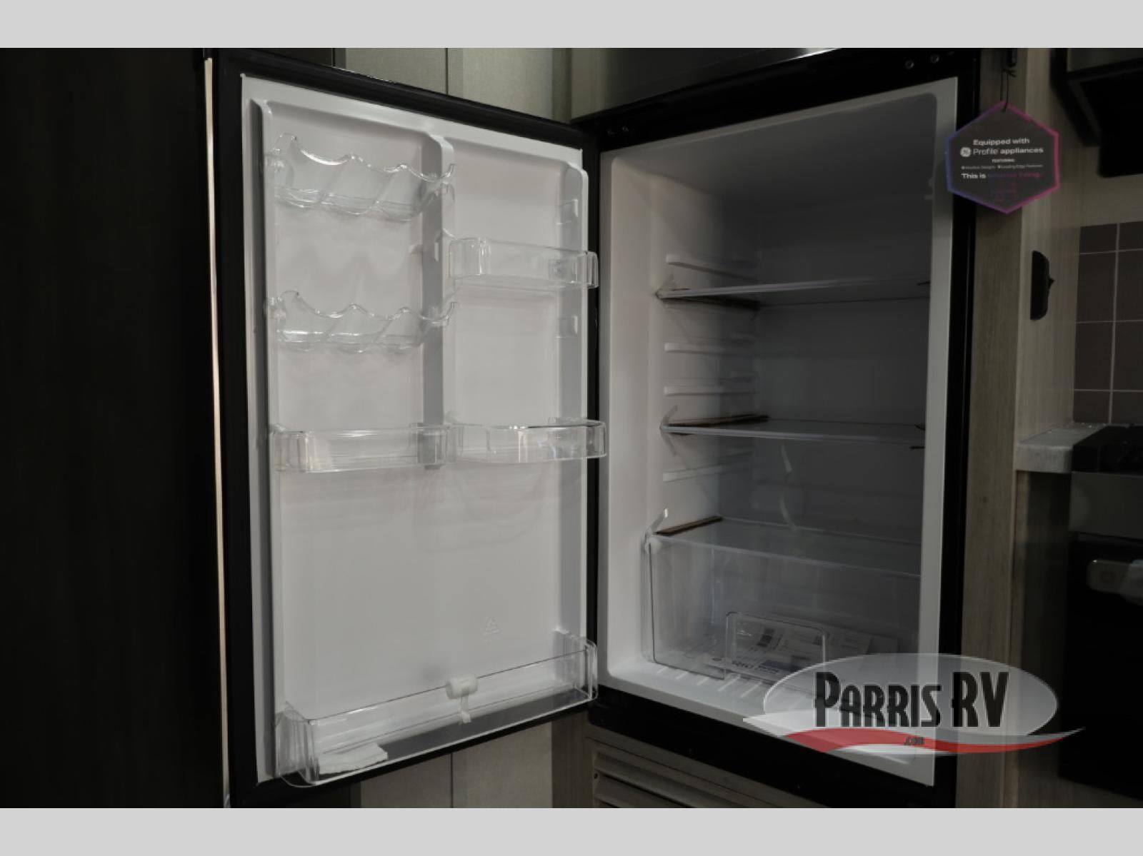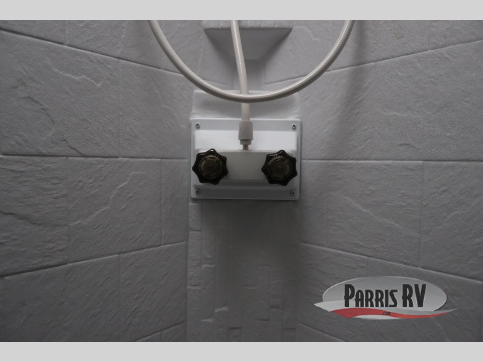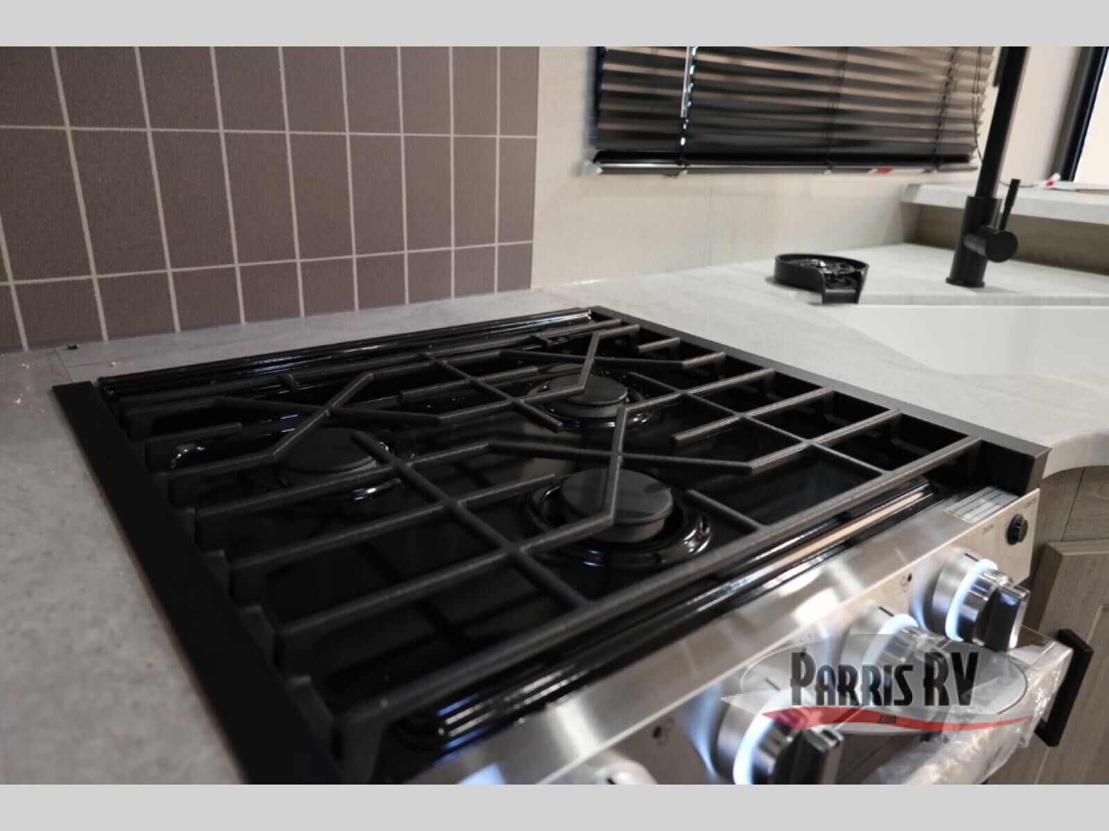 You're bound to love every minute spent in this spacious travel trailer! The rear covered porch includes an exterior entry door here and a patio door to give your unit a more residential feel. There is a sofa that can be switched out for optional theater seating, a U-shaped dinette within the large slide, plus two bar seats at the kitchen counter so everyone has a place to relax. A spacious walk-through bathroom will create a front master bedroom with a 60" x 74" queen bed, dual wardrobes, plus your own exterior entry door for convenience!