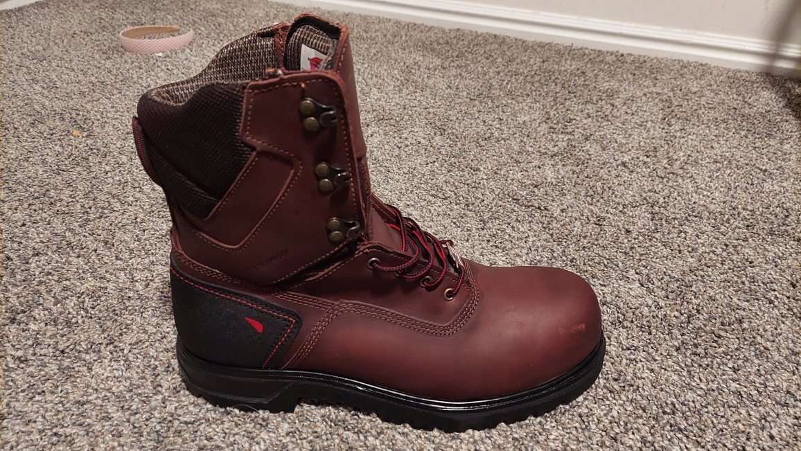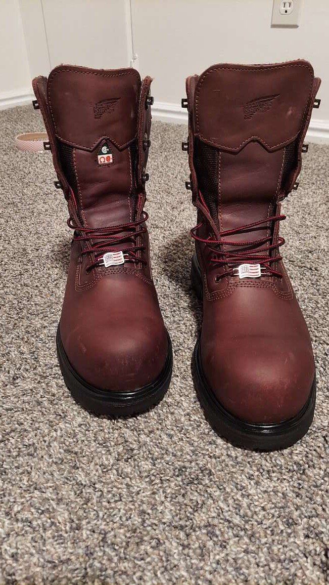 Tags: Boot, boots, work, leather, red wings, Redwing, Redwings, construction. toe, 8 inch, 8", hiking, hike, build, builder, safety, safety toe, 6", 6 inch, size 10, size, lace,