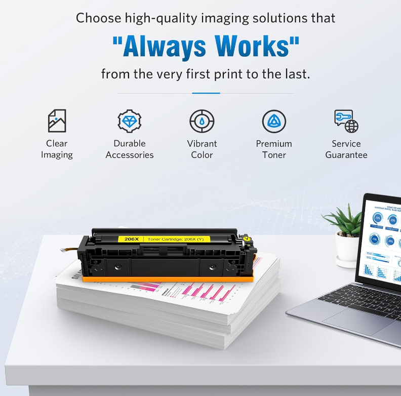 High Page Yield: Up to 2450 pages per 206X W2112X Yellow toner cartridge (Letter A4, at 5% coverage)