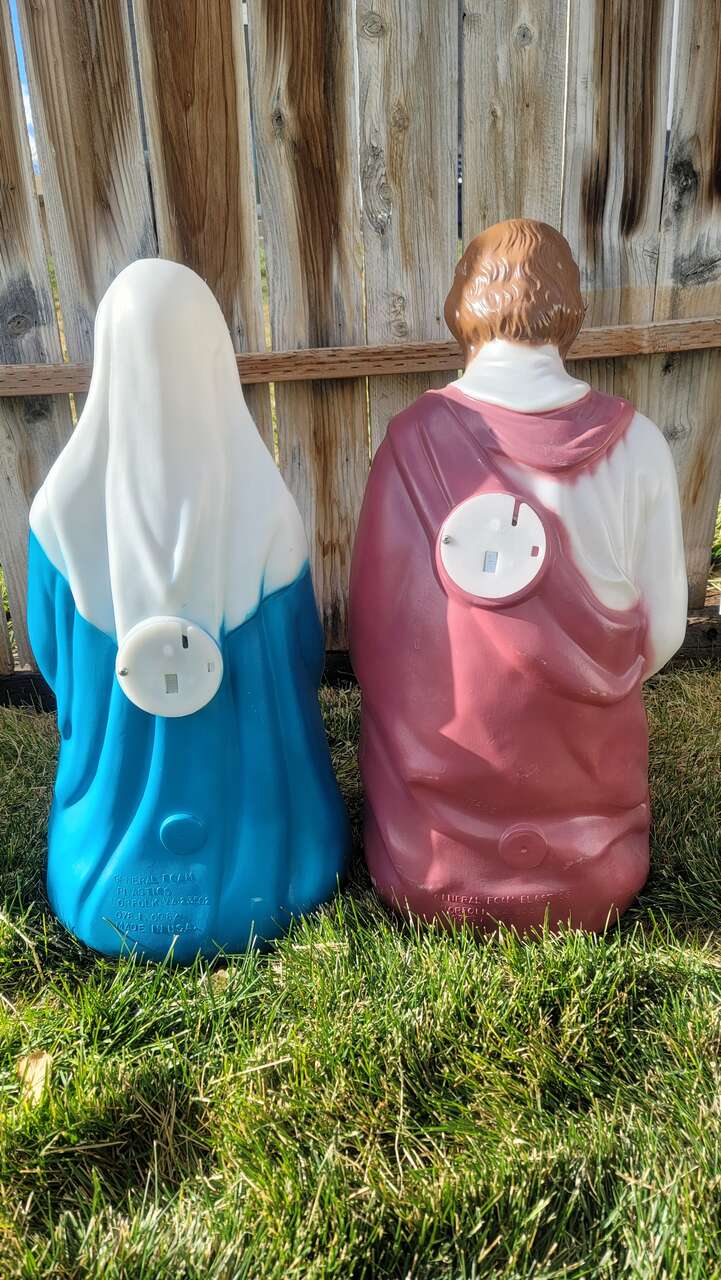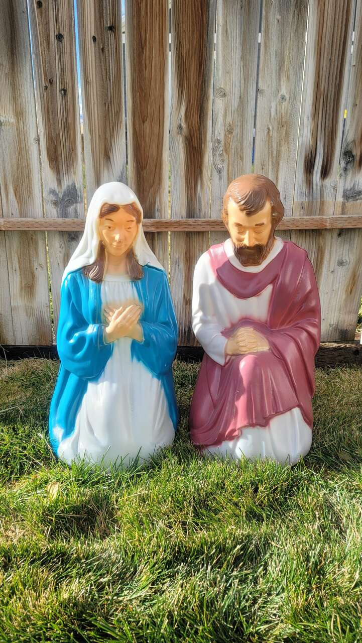 Vintage Mary and Joseph blow mold set in really good condition. Only used indoors so they do not have sun damage. Both are in excellent working condition. May pick up in Magna, Murray, or Salt Lake. $40 for the set.