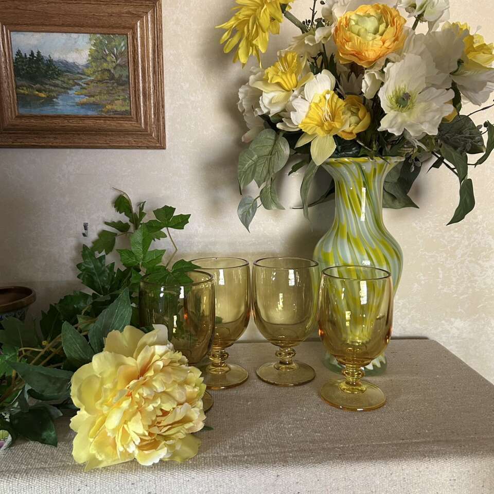 ApplePayFour Hoffman House Tall Water Goblets Sunshine Yellow by Imperial Glass, Ohio. Of course they are discontinued and I couldn’t find any available for sale at replacement.com or eBay. In pristine condition with no chips, cracks, scratches or defects. They appear to have never been in a dishwasher and show zero signs of wear. Approximate Measurements: 6.5” Tall X 3-4” diameter. Delivery available to a convenient location within in your area for $10. (I still have to pack it up.)hey