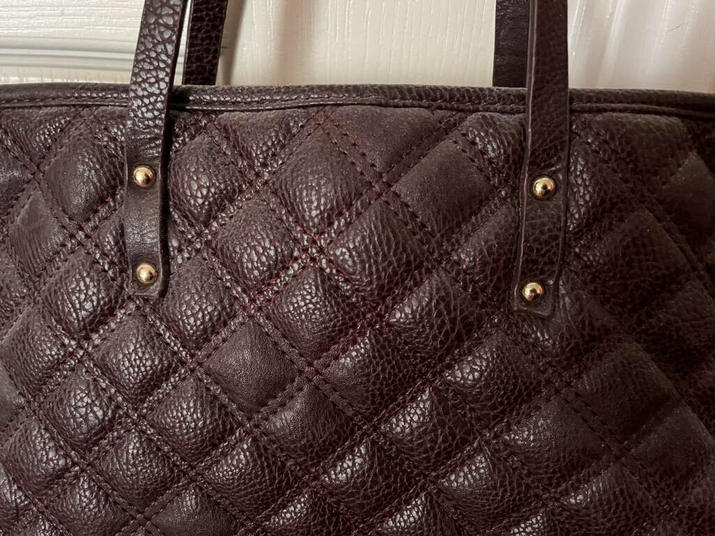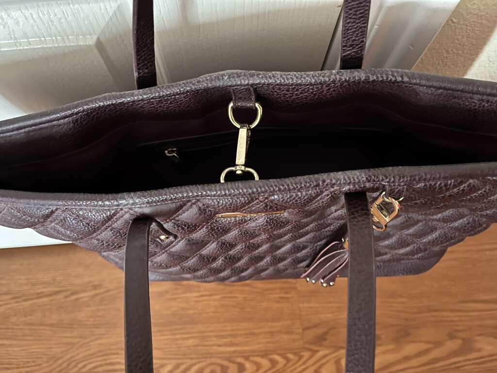 VenmoPurple BCBG quilted leather tote/travel bag. Total of 4 compartments and pockets. 5,5” wide x 11,5” deep x 19” long. From smoke free and pet free home $30