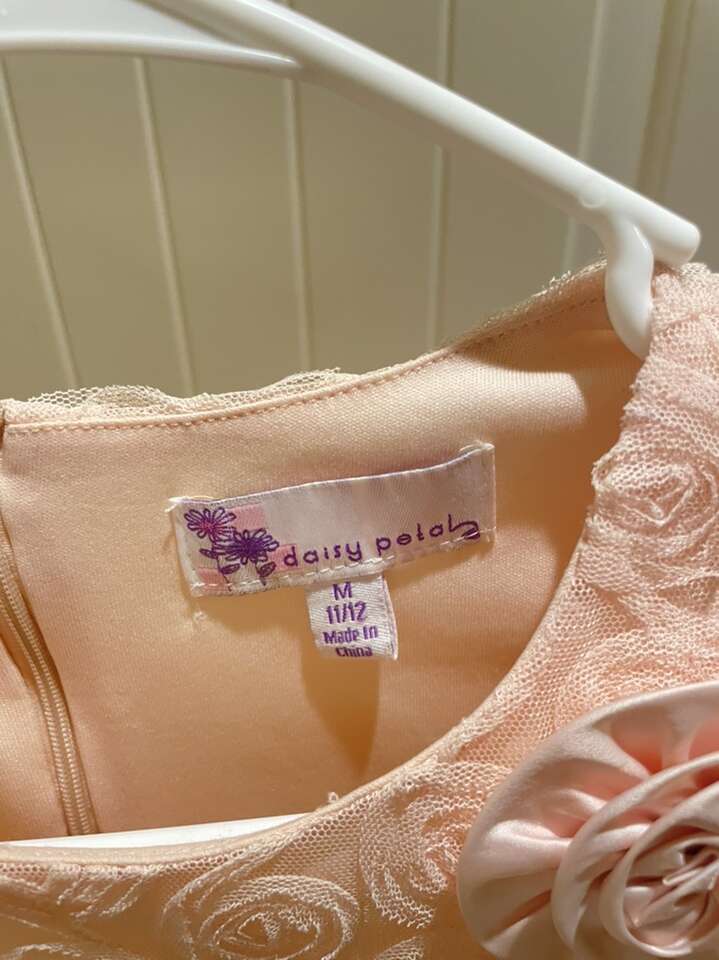 VenmoBeautiful blush pink lace rosebud dress with tricot lining. Cap sleeve and A-line skirt make it look elegant on a young girl.