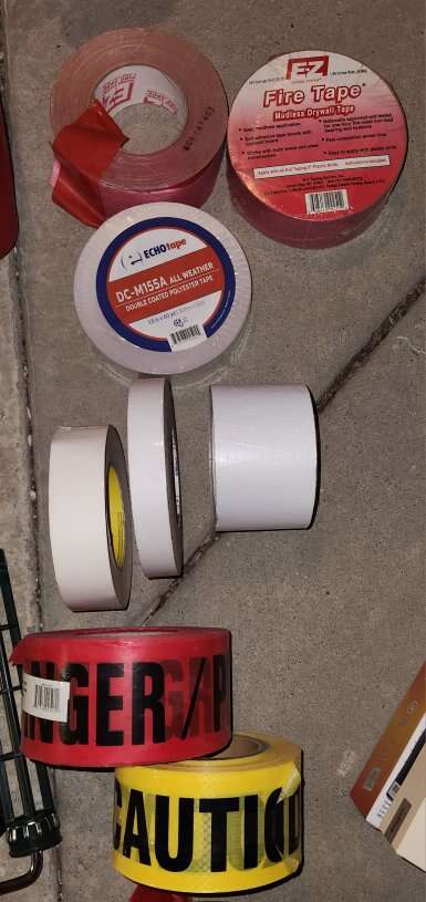 CashAppvarious paint supplies. safety vests XL Different tape rolls for firetape, insulation, etc. Chalk line refill jugs.