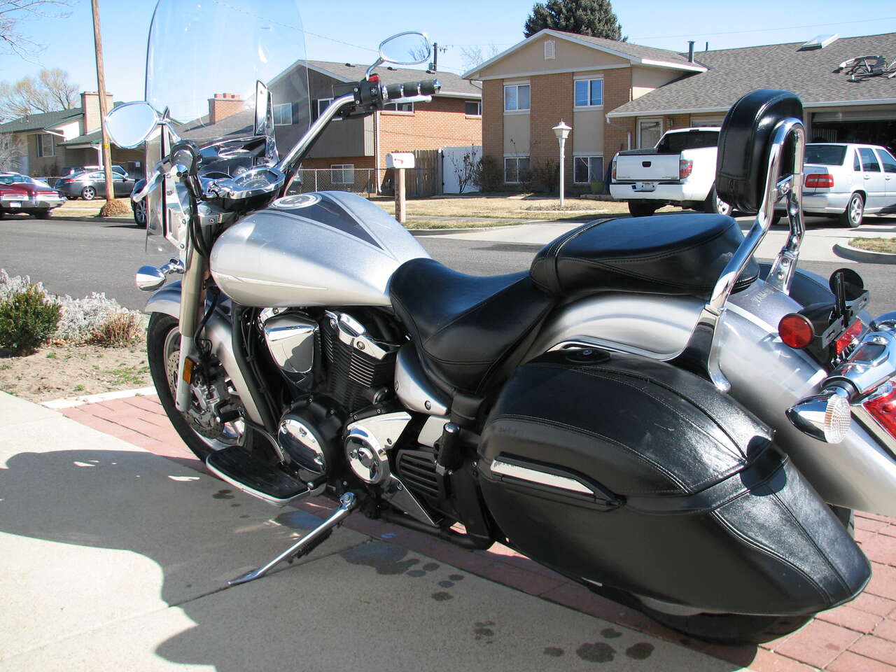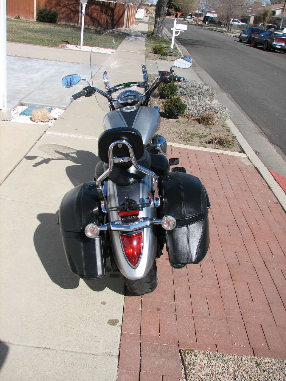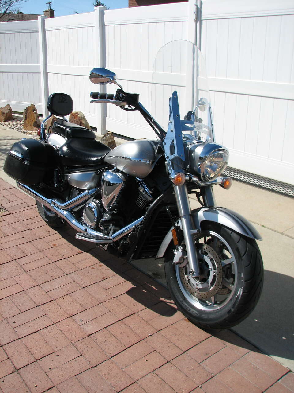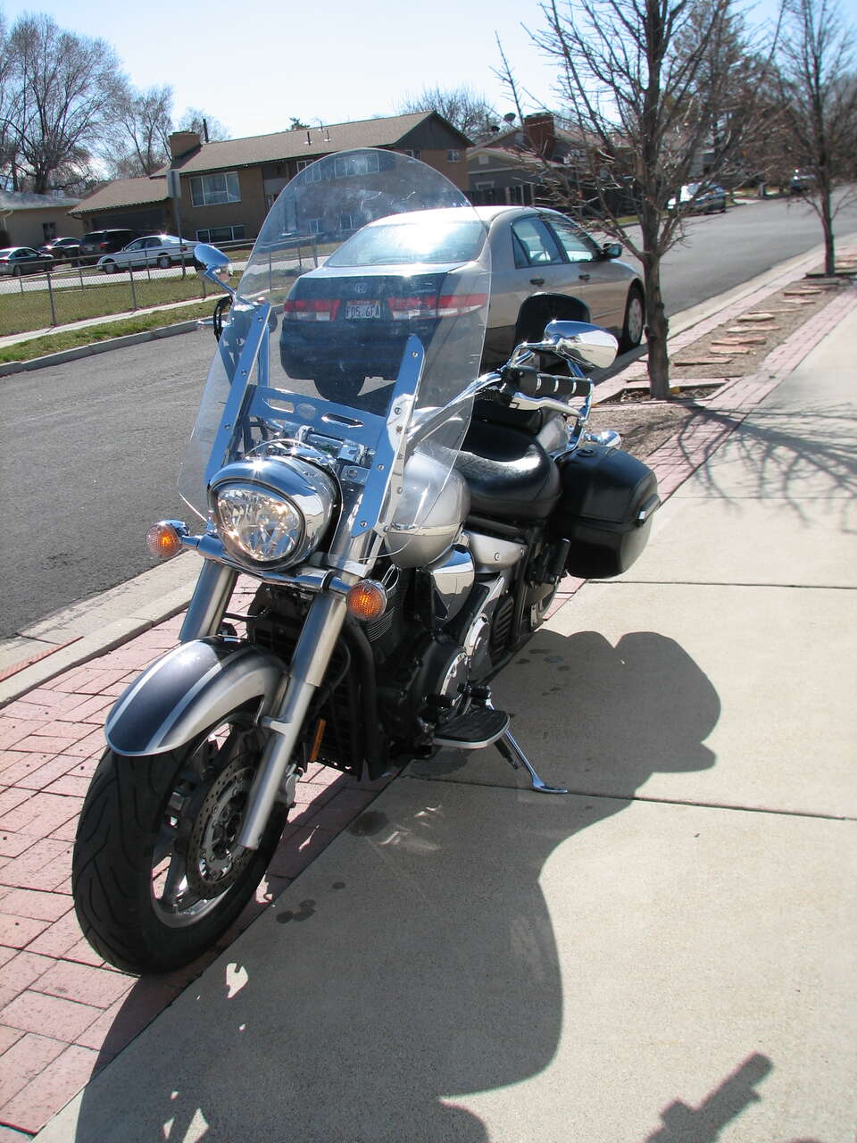 This bike has a Salvage Title. I had to replace a brake rotor and handle bars. Bike was not dropped, I could of left the bars, they were bent ever so slightly. I didn't like the feel of them, they did'nt come back enough. The forum reviews stated, many owners went to Barron bars for more comfort...They were right. Has Avon grips, Cobra pipes. Nice bike, it's fuel injected, New battery, Runs Great! windscreen, bags, floorboards and backrest make it a nice, comfortable bike.