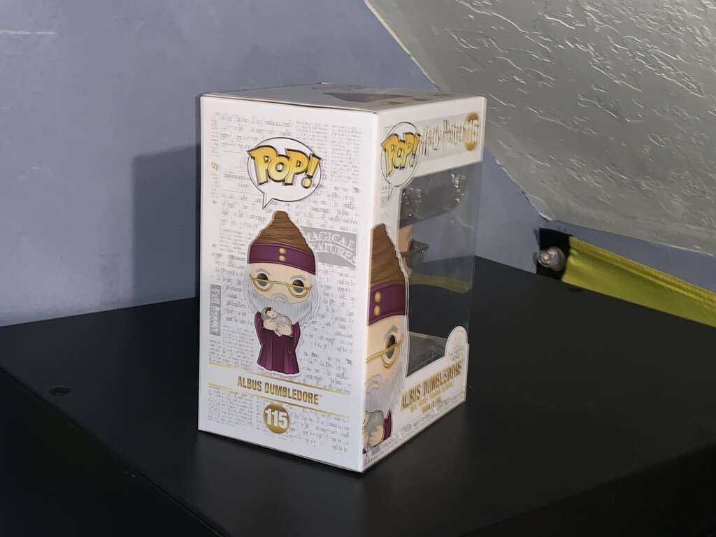 ApplePayAlbus Dumbledore holding baby Harry Potter Funko Pop brand new in the box and box is in great condition.