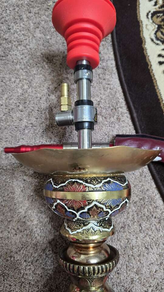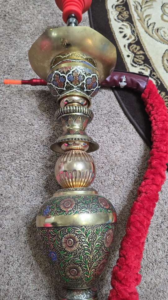 Luxury hookah made of copper, four feet long, so beautiful looks with free some hookah's stuffs.