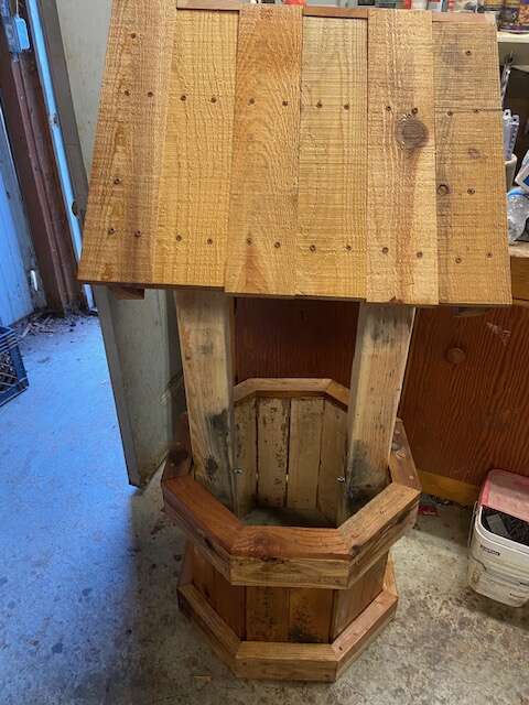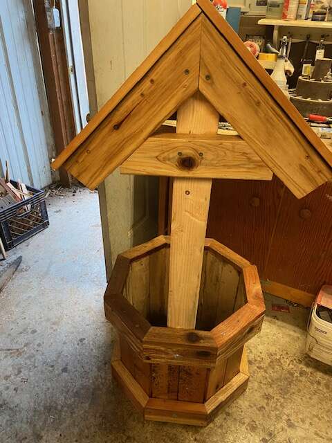 4 FT CEDAR AND REDWOOD WELL HAS J HOOK FOR PLANTER
