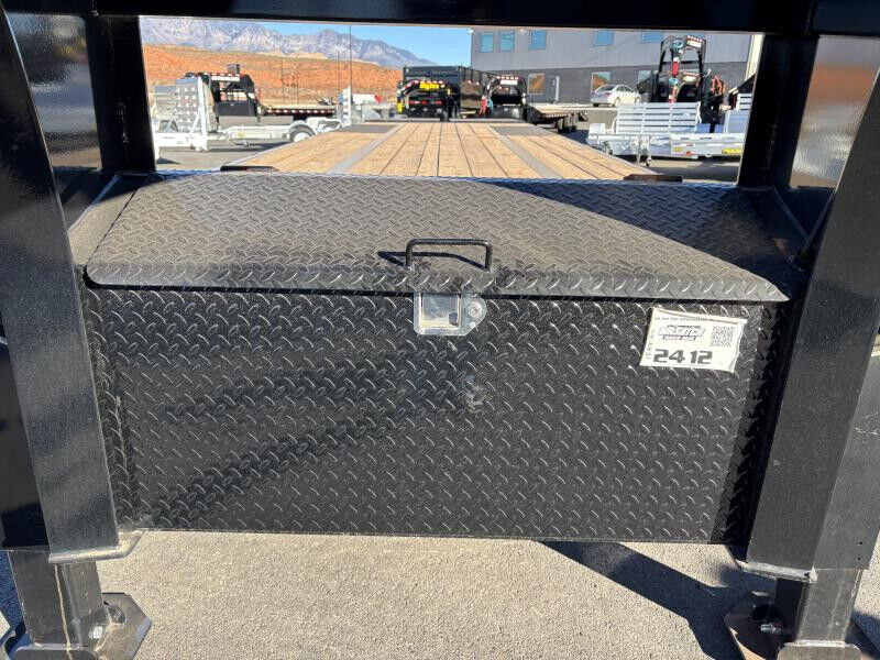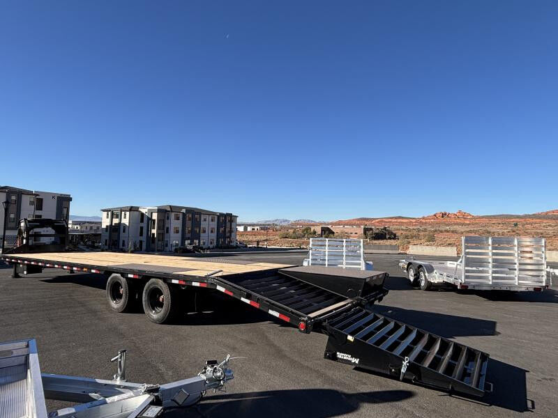 Stock #: PJ0002 Trailer Includes Following Options: 5' Dovetail w/ Flip Over Monster Ramps Dual Hydraulic Jacks 14 Ply LR-G Tire Upgrade Standard Features: 2 - 12,000# Axles Electric Axle 3/8" Grade 70 Safety Chain w/Clevis hook (2 each) Spring Loaded Drop Leg Jacks (10,000 lb.) 5-Leaf Slipper Spring Suspension Dual 16" Black Wheels (8 on 6.5" Bolt Pattern) ST235/80R16 Radial Tires (3,080 lbs.) 3-5/8" x 1-1/2" (ID) Stake Pockets Diamond Plate Low-Pro Fenders 12" x 19 lb. I-beam Tongue 3" Channel Crossmembers on 16" Centers 2" Treated Pine Lumber Deck 102" Wide Deck DOT Approved Flushmount Lifetime LED Lights All-Weather Wiring Harness (7-way RV) Powdercoat WASATCH TRAILER SALES - LARGEST TRAILER SELECTION IN UTAH Hurricane: (435) 239-8920 | 6477 W Foothills Canyon Dr. Hurricane, UT 84737 View More Inventory: www.wasatchtrailer.com Over 2,000 trailers in stock at Wasatch Trailer Sales! With three convenient Utah locations - Layton, Springville, and Hurricane - finding the perfect trailer has never been easier. We offer one of the largest inventories around, backed by quality you can trust, superior value, and unparalleled pricing. Don't see exactly what you need? Call or text 435-239-8920 with 20+ top manufacturers and easy financing, we'll get you on the road fast! Whatever you haul, we've got the right trailer - in stock year-round!