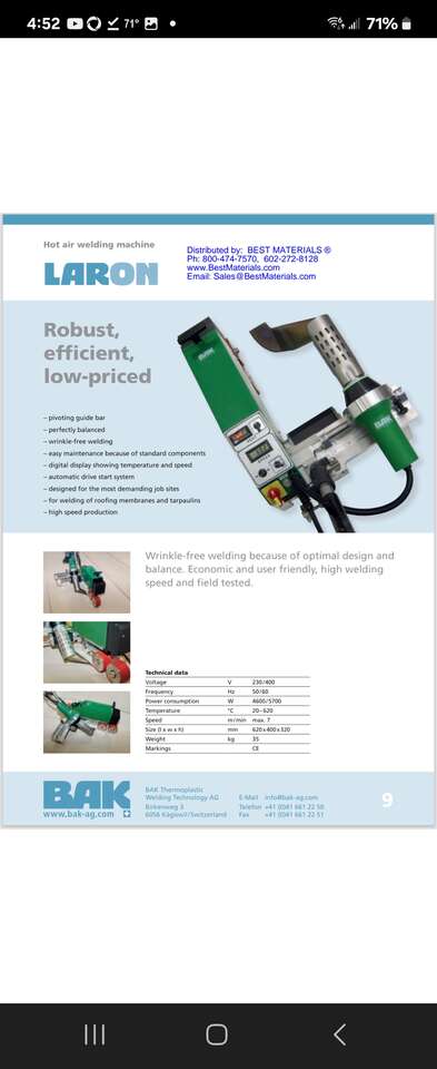 TPO/PVC Membrane Welder with 100' of cord new never used.
