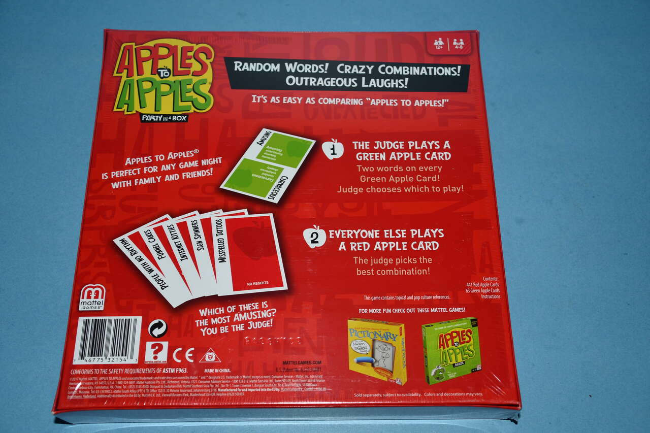 This NEW, SEALED "APPLES TO APPLES" GAMES is for ages 12+. Our home is smoke free. Questions??? Please ask. We are located in Plain City. Cash only please.