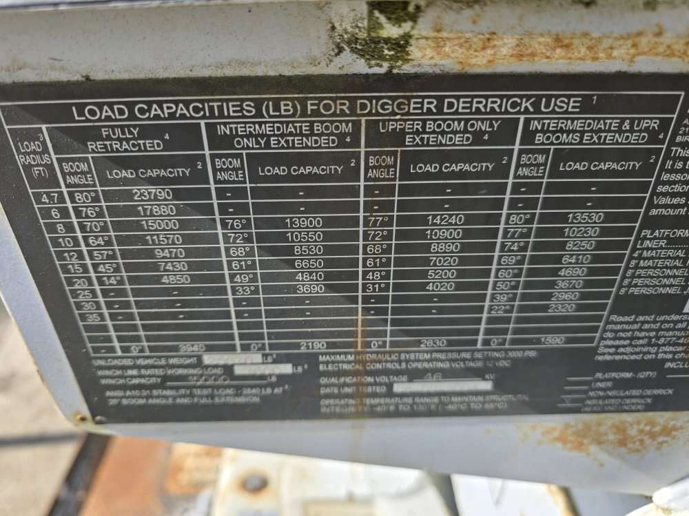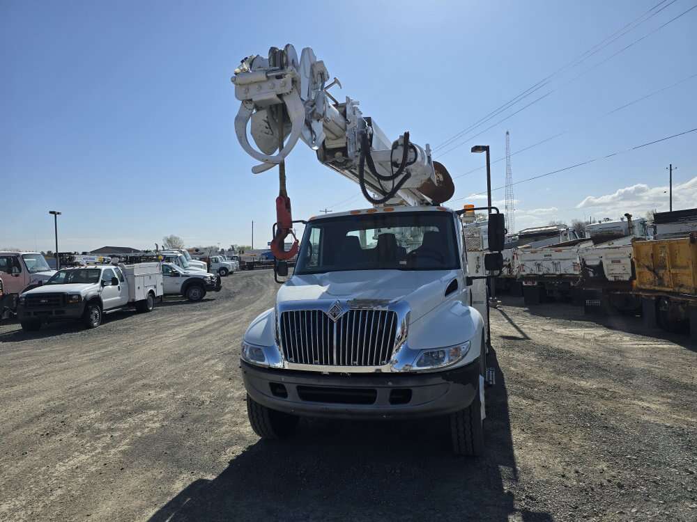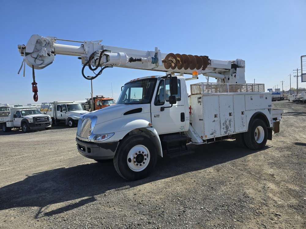 2005 International 4300 23k# 47' digger Derrick, DT466 diesel engine, 6 speed manual transmission, 80,000 miles, 7,100 hours, Altec DM47TR, 47 foot sheave height, 23,790 pound capacity, 18" auger, auxiliary hydraulics, air to the rear, 33,000GVW, good tires, former fleet vehicle 208-734-3434