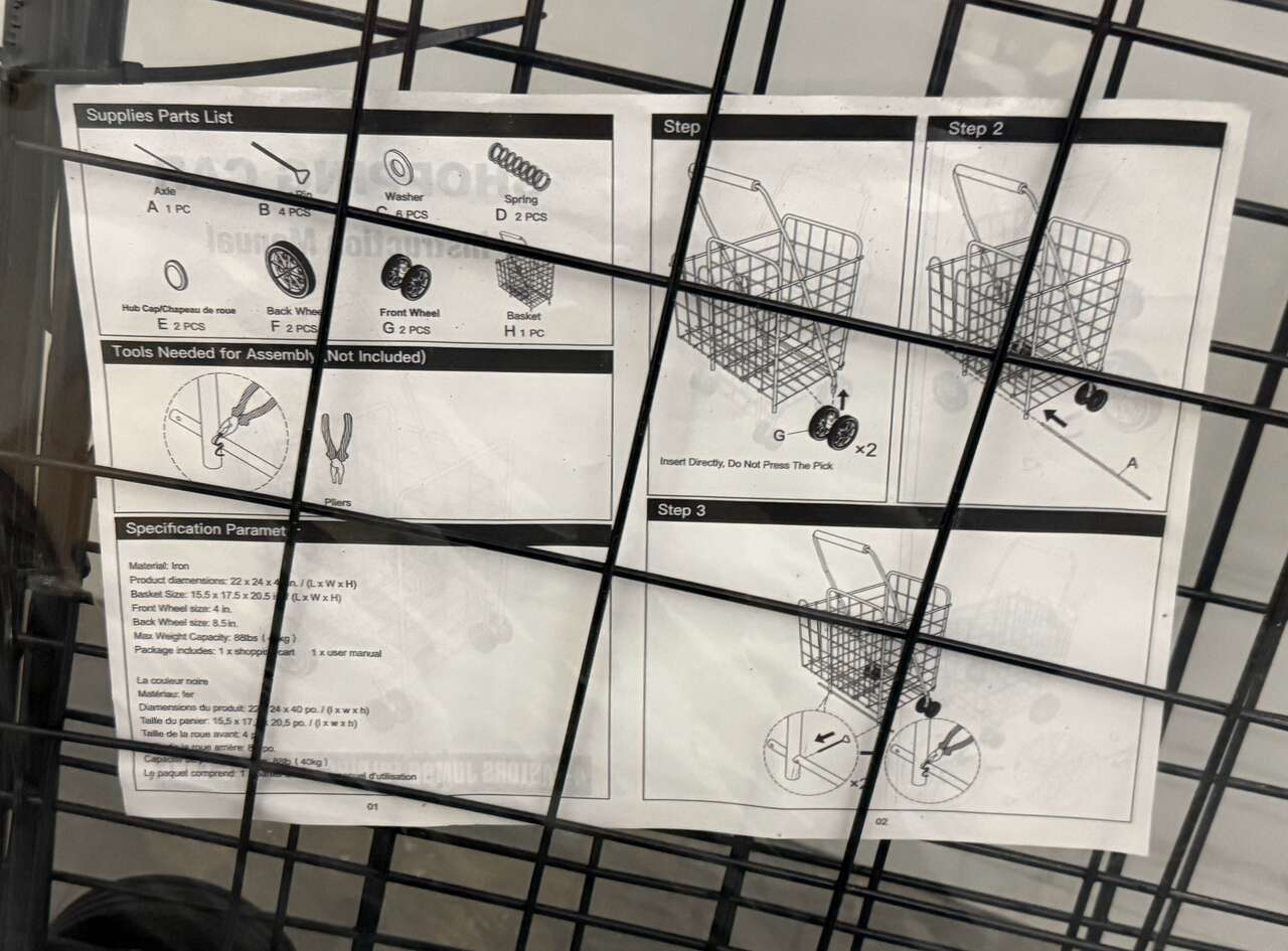 Venmo4-Castors Jumbo Folding Shopping Cart with Dual Swivel Wheels and Double Basket