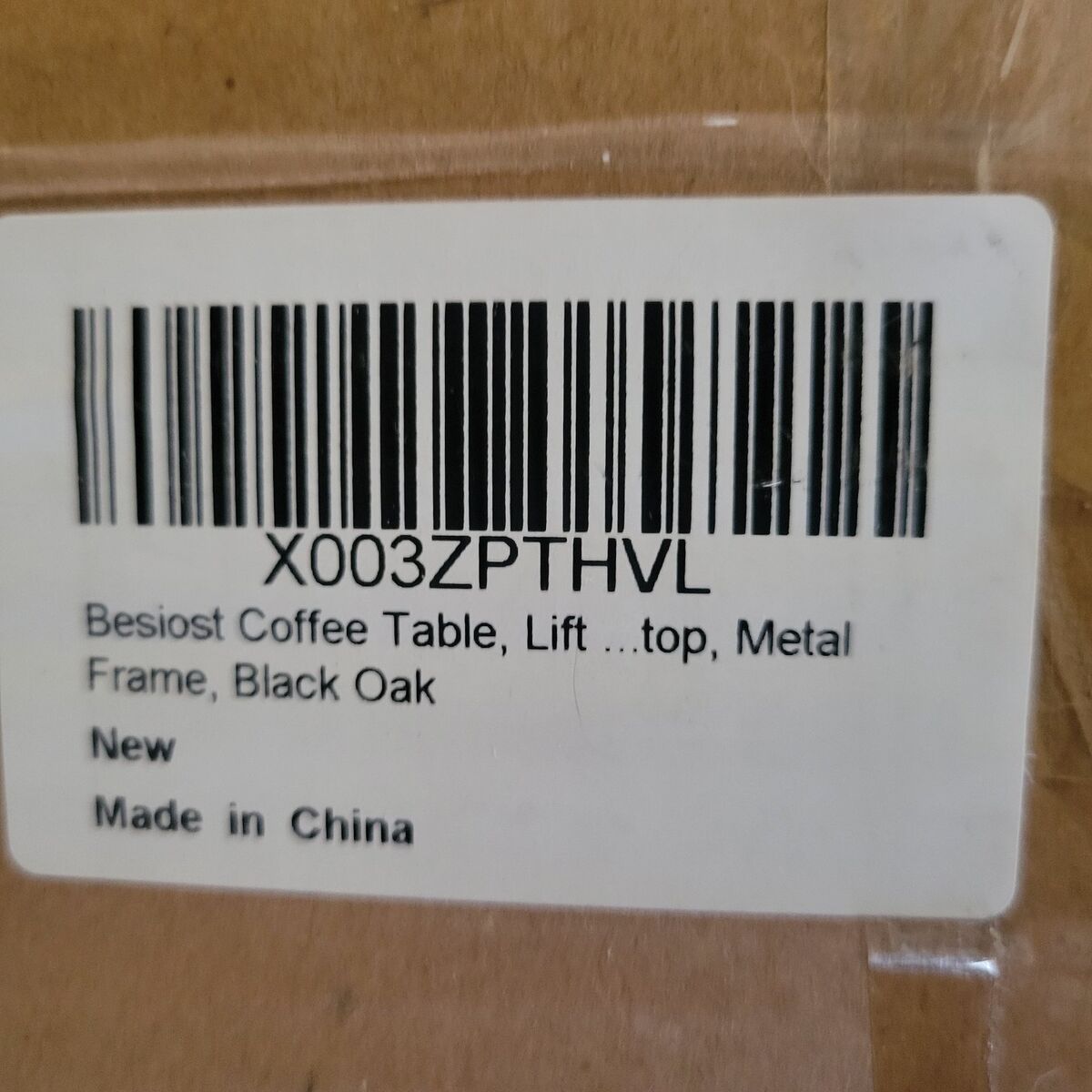 VenmoNew Besiost coffee table with tops that lift up. Metal frame. New, in box. Packaging size of 113.5 x 58.5 x 12.5 cm. Color is marked ' O ' & hardware is 'B'. Sticker indicates 'black oak'. The color photos of the table and description is very similar if not the exact same model.