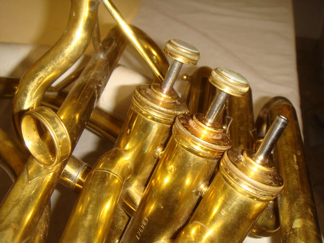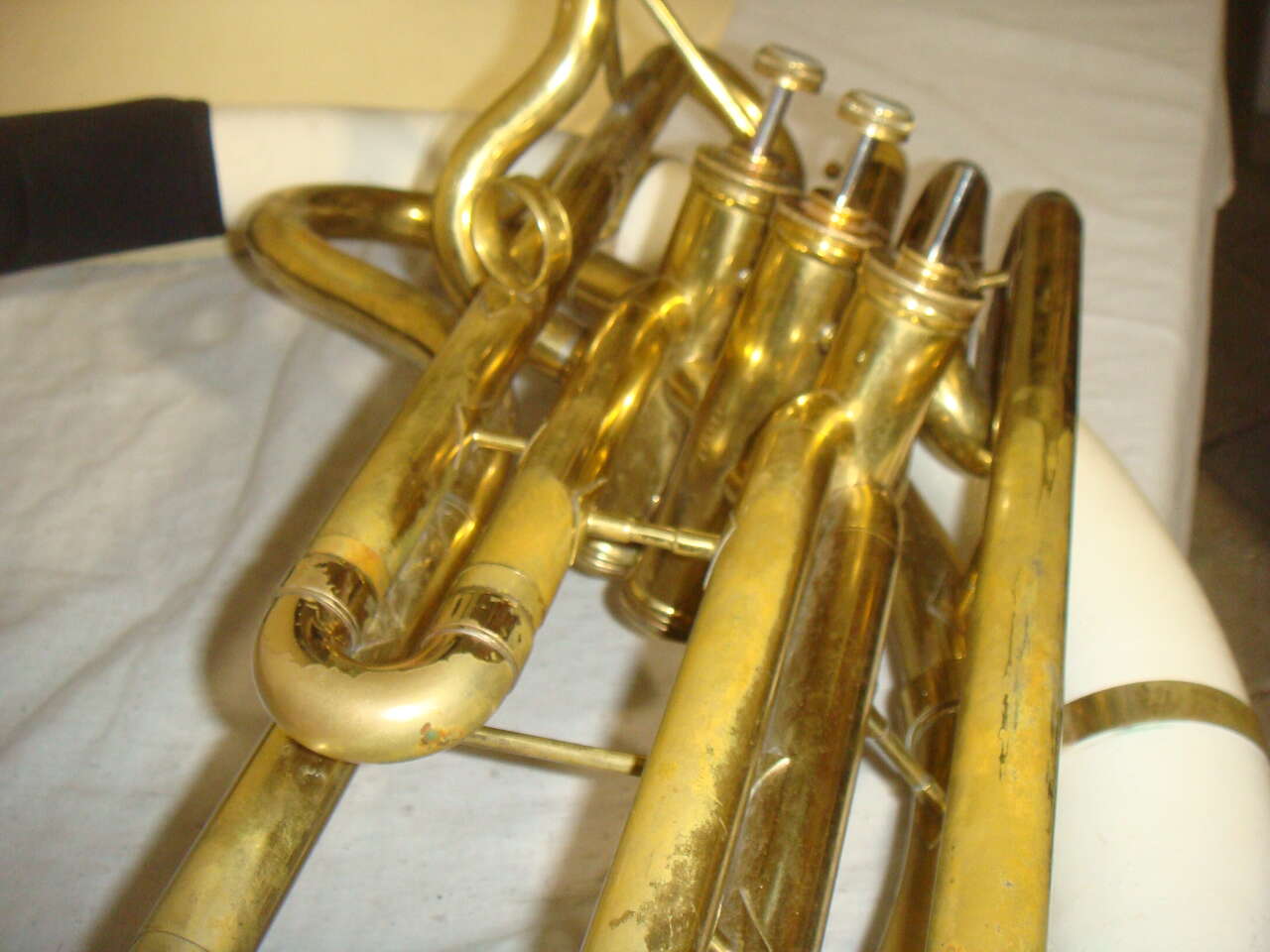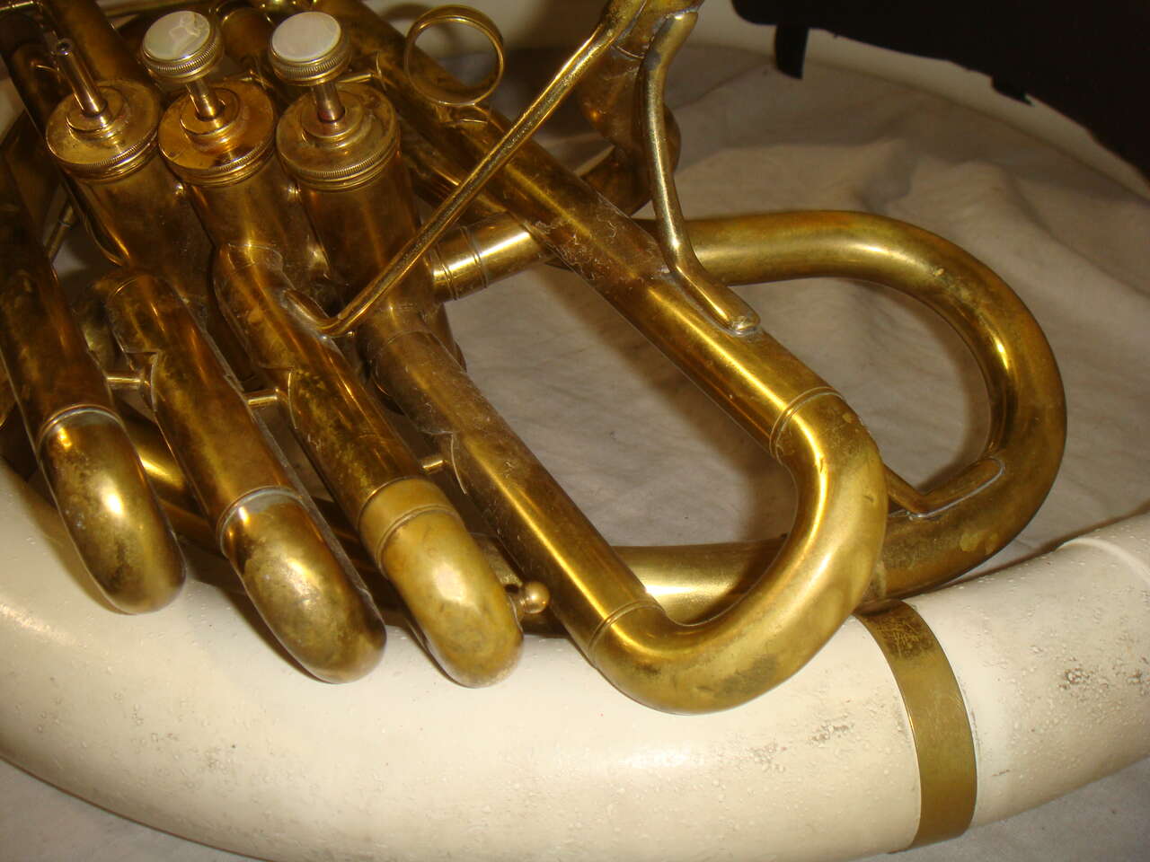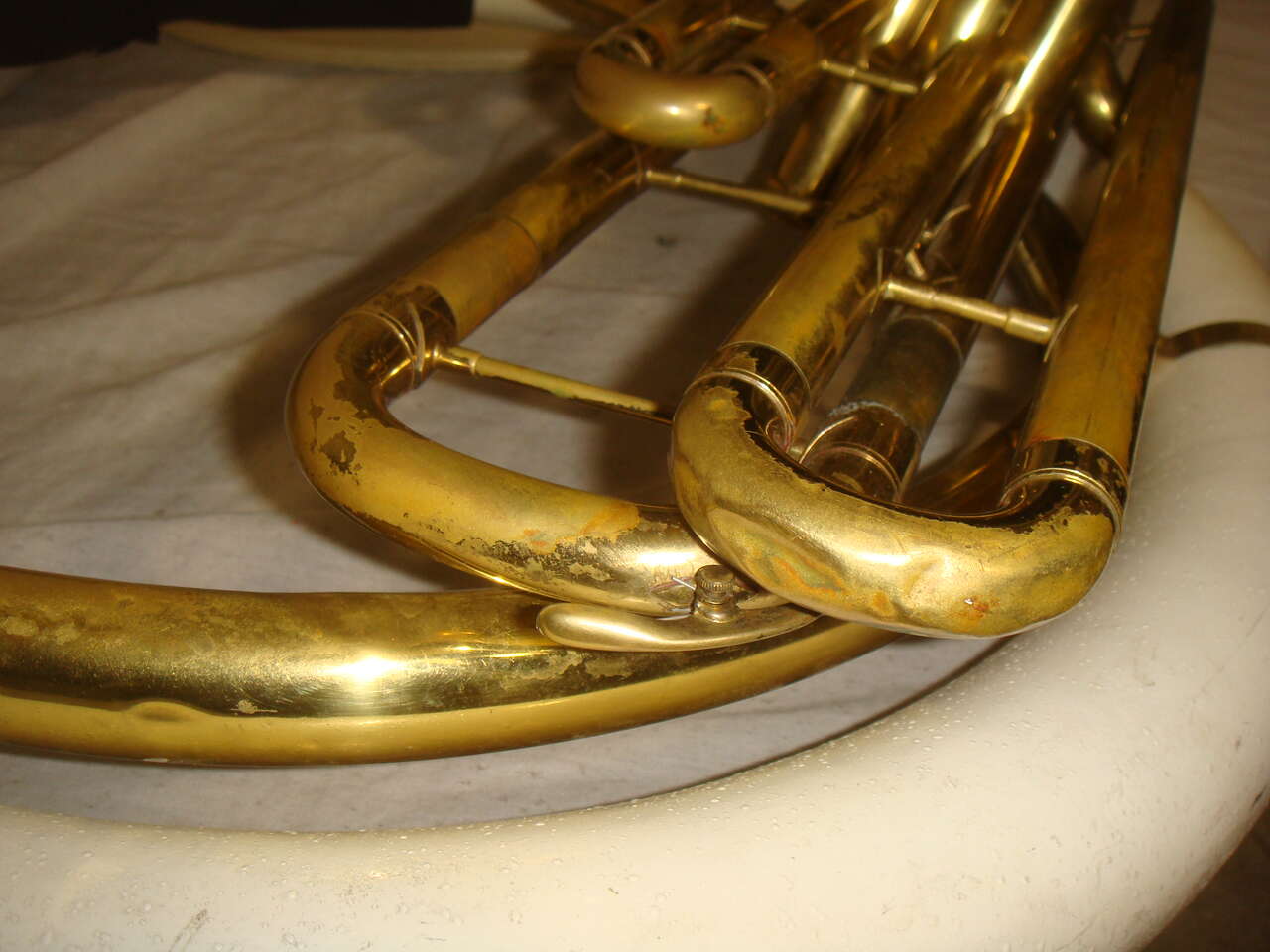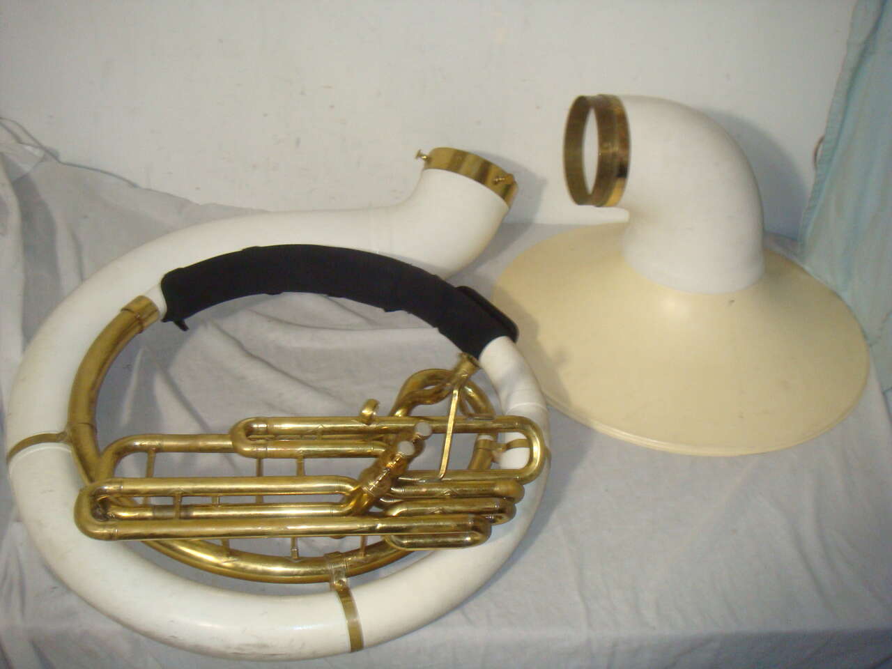 Jupiter Jsp1000 Qualifier Fiberglass Sousaphone With Hard Case. This is a well used tuba that we received as you see it in the photos. it has surface marks, scratches, dings, and is missing one of the valve buttons. The valves all seem to move smoothly, but could probably use some grease. There is one spot on the fiberglass neck section that has some cracking in the fiberglass. It it's still solid and firm when you push on it near the cracks making it seems as though it might just be the outside, but we can't see that far inside to tell if it passes all the way through (maybe if you had a borescope you could tell). I would imagine it would be a very minor fiberglass repair either way. Aside from the marks and dings, it seems to be in good overall condition. Because of the nature, we're selling it as-is for cheap. These are usually $5500-6000. This is your chance to save big-time if you need a practice horn, or as a refurb project. It comes with everything shown. This is your chance to save big-time so don't miss out!!