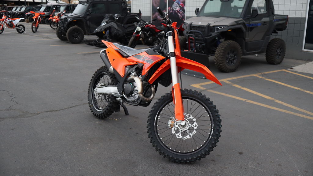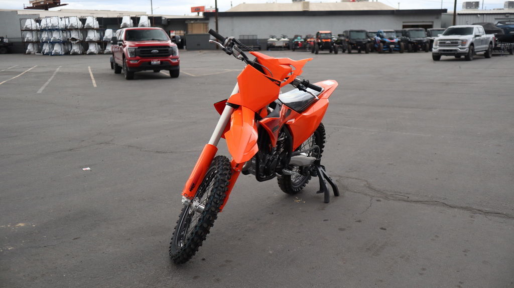 2025 KTM 450 SX-F When you see the 2025 KTM 450 SX-F roll off the trailer, you know it means business. With 5 AMA 450 Supercross titles in the last 7 seasons, the 2025 KTM 450 SX-F rolls up to the starting gate already armed with the learnings of past championships - only this time, it's freshly loaded with an all-new arsenal of weaponry. Features may include: BEFORE THE GATE CLICK INTO ACTION Easy Suspension Adjustment As always, the suspension boasts an easy tool-free setup at both ends, ensuring you chase down the podium in total control. On the rear, a hand-adjustable dual compression control allows riders to adjust high- and low-speed settings in a matter of seconds. The forks on the front end are also easily adjusted thanks to hand-adjustable clickers on the bottom of the fork shoe and top cap. BREATHE EASY Air filter box Designed to provide maximum airflow, the air filter box is designed with precisely positioned inlet ducts aimed at preventing air deformation and maintaining filter protection. The Twin Air filter and air filter support design feature a simple fail-proof mounting system for safe and accurate filter installation, ensuring the air filter is easily accessed, without tools, by removing the left side panel, for easy track-side maintenance. A vented air filter box cover is also included for all SX and SX-F models in the by-pack. LESS FOCUS ON THE TOOL, MORE FOCUS ON THE TRACK Serviceability The 2025 KTM SX and SX-F range is engineered and designed to provide riders with easy-to-access service parts, as well as suspension adjustability. This allows faster track-side and off-season maintenance, as well as making motocross more accessible for novice riders without pit crews. START STRONG UNMATCHED PERFORMANCE More Usable Power When the war drums sound and the gate drops, you need to be the first to off the line in a bid to rule the roost. The 2025 KTM 450 SX-F boasts one of the most manic 4-stroke powerplants in the paddock, with its SOHC engine proving to be the perfect example of advanced engineering. With a peak power output, and an overall engine weight of only 26.8 kg, you'll leave the competition with more than a little mud on the face. DROP THE CLUTCH Launch Control & Quickshifter Launch control, ENGAGED! Designed for the holeshot, the 2025 KTM SX-F range comes standard with launch control and Quickshifter function, allowing for fast upshifts without using the clutch. Launch control is easily engaged by pressing the traction control and Quickshifter buttons simultaneously and works by limiting the amount of power to the rear wheel, improving traction, and preventing loss of control under hard acceleration. Meanwhile, the Quickshifter function means you can bang through from 2nd to 5th gear with your focus solely on the first corner. TOTAL TRACTION Selectable Maps + TC The map select switch on the 2025 KTM SX models features a simpler design, allowing for easier functionality in switching between 2 engine maps. Map 1 provides a more linear power curve. while map 2 punches all-out with aggressive throttle and explosive power. Luckily, Traction control is easy toggled to an on or off position from the same switch, ensuring maximum traction and a distinct advantage in wet or muddy conditions. CALM UNDER FIRE SLEEKER FOR YOU TO SCRUB CLEANER Absolute Control Get ready for a full-on berm assault. The 2025 KTM SX and SX-F machines have received major frame updates directly from Factory Racing efforts.