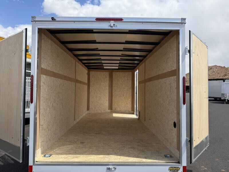 Stock #: AH0020 Trailer Specs: Color: White .024 Aluminum Door/Ramp: Rear Barn Door Weight: 2,300 lbs. | GVWR: 7,000 lbs. | Payload: 4,700 lbs. Axle(s): 2-3,500 lb. Dexter Spring Electric Axle w/ EZ Lube Hubs Tire/Wheel: ST205/75R15 | Load Range C Coupler: Type: Bumper Pull | Size 2-5/16" | 7-Way 12V Connector 16" OC Vertical Posts | 16" OC Crossmembers | 24" OC Tube Roof Bows 1 Year Limited Warranty Standard Features: 2"x4" Tube Main Frame 1-Piece Aluminum Roof 16" Starbright Stoneguard 1/8" Economy Sidewall Liner 3/4" PlexCore Flooring (4) 500 lb. Wall Mounted Rope Rings 32" Side Door w/ Bar Lock Flow-Thru Sidewall Vents 12v Interior LED Dome Light 12v Exterior LED Lighting Smooth Aluminum Radius Fenders Undercoated Chassis Common Addons: Wall Mounted Spare Tire 10 ft. E-Track Stick Recessed 2,500# D-Ring WASATCH TRAILER SALES - LARGEST TRAILER SELECTION IN UTAH Hurricane: (435) 239-8920 | 6477 W Foothills Canyon Dr. Hurricane, UT 84737 View More Inventory: www.wasatchtrailer.com Over 2,000 trailers in stock at Wasatch Trailer Sales! With three convenient Utah locations - Layton, Springville, and Hurricane - finding the perfect trailer has never been easier. We offer one of the largest inventories around, backed by quality you can trust, superior value, and unparalleled pricing. Don't see exactly what you need? Call or text 435-239-8920 with 20+ top manufacturers and easy financing, we'll get you on the road fast! Whatever you haul, we've got the right trailer - in stock year-round!