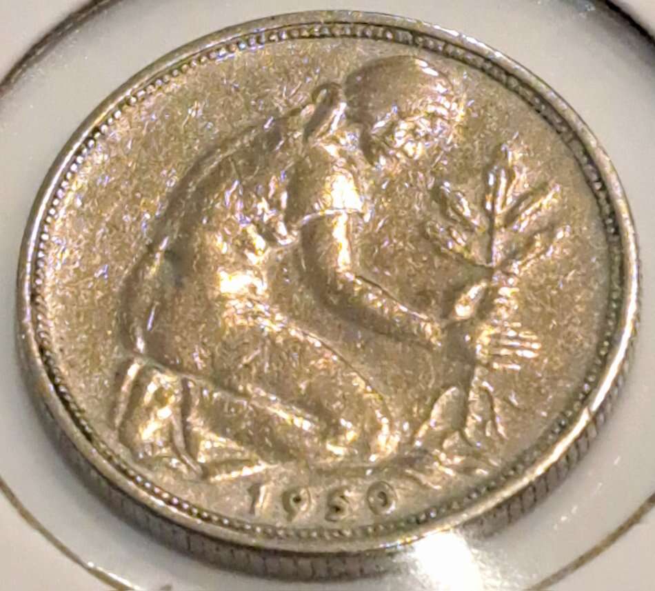 1950 G GERMAN 50 PFENNIG AU BUNDESREPUBLIK WOMAN PLANTING WORLD COIN - $20 Cash - All prices are negotiable, discount for purchasing multiple items given. I am available Monday -Friday between 4 pm to 11 pm and all day Saturday.