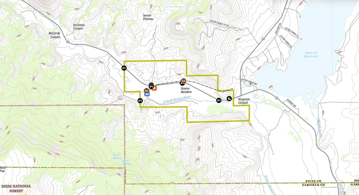 Nestled close to Otter Creek, with over 2 miles of the scenic East Fork of the Sevier River, this nearly 777-acre working ranch offers exceptional utility in a picture-perfect setting. In addition to the 200+ acres of tillable river bottom ground, the property includes a massive 481.26 ACFT water right with an 1880s priority, ensuring plenty of water for multiple purposes. HWY-62 runs through the middle of the property, separating the river bottom on the south from the sage benches to the north, with the property being fully fenced and gated along the highway. Situated at the mouth of Kingston Canyon, it provides exclusive access to over two miles of Blue Ribbon fishing, private road access, and countless possibilities.