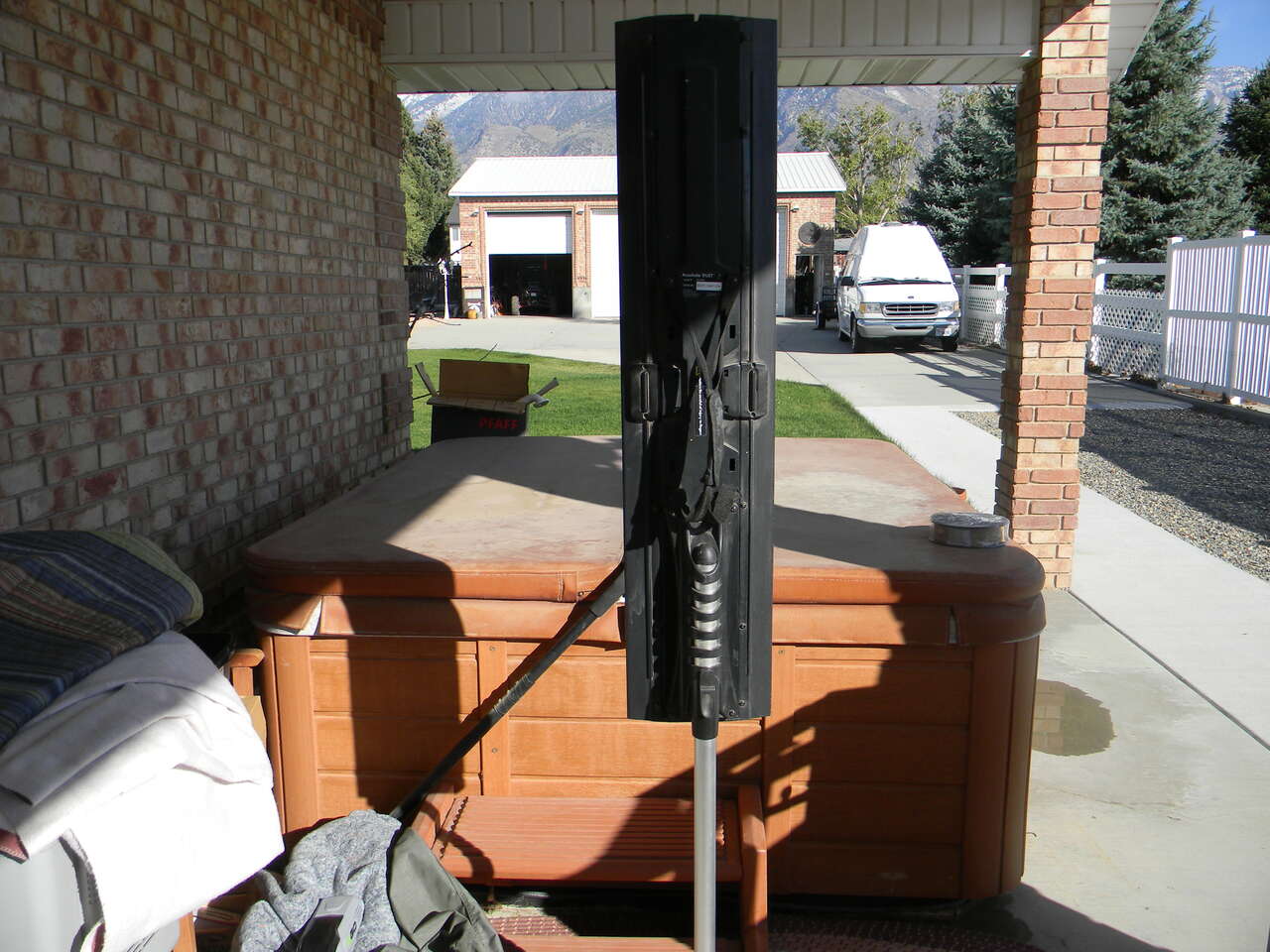 USED THIS SCREEN WHILE CAMPING, GREAT TO KEEP THE FAMILY TOGETHER AFTER FISHING AND CAMPFIRE. HAS A SCREEN THAT IS ON A LEGGED POLE AND SCREEN PROJECTS OPEN (app. 3' X 4' ) THEN RETRACKS FOR SAFE STORAGE.