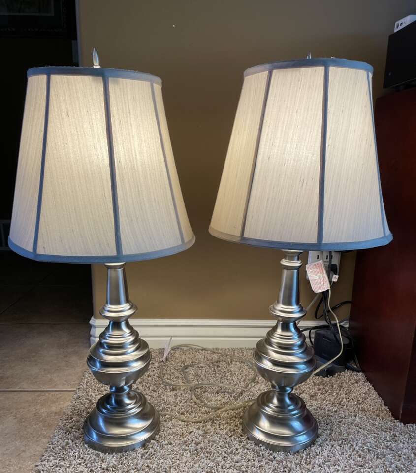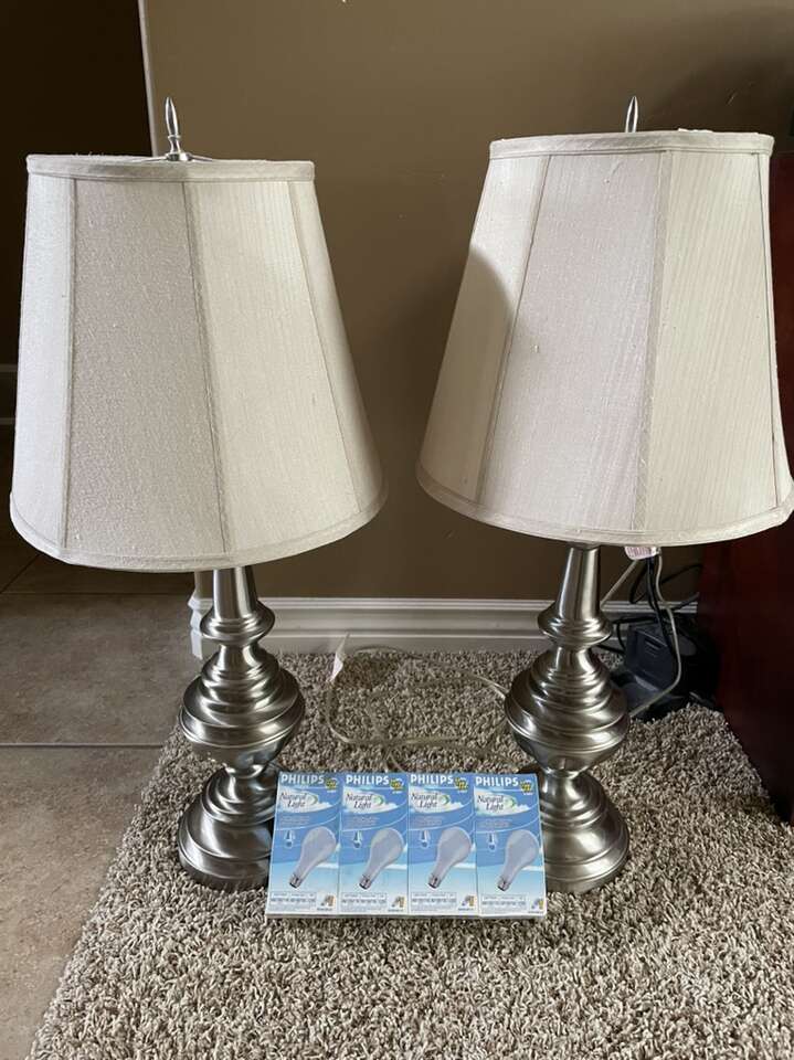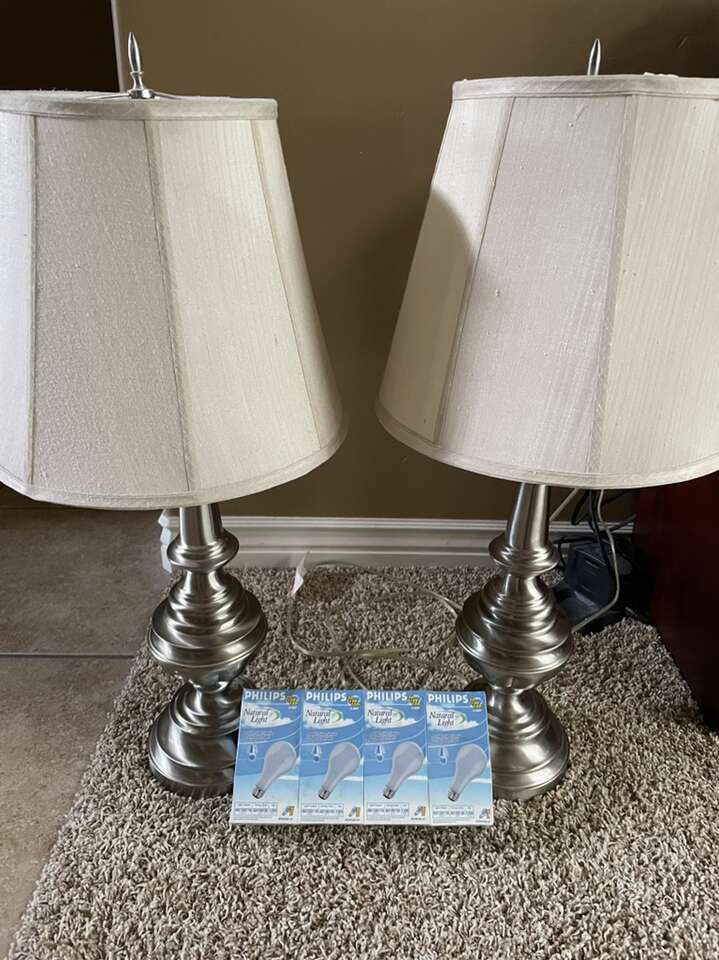 ApplePayNew low price! Stiffel Brushed Nickel Bedside Lamps, 3 Way Dimmable Nightstand Lamps with Fabric Lampshade, Living Room Bedroom Office, new 4 pk 3way bulbs Included! Traditional and elegant for any room.