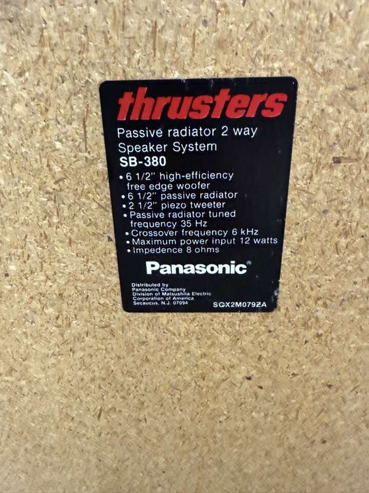 ApplePaySelling a tested pair of Panasonic Thrusters SB-380 Speakers. Specs are in the pics. Cash/Venmo/Apple Pay only, no trades. Call or text anytime!