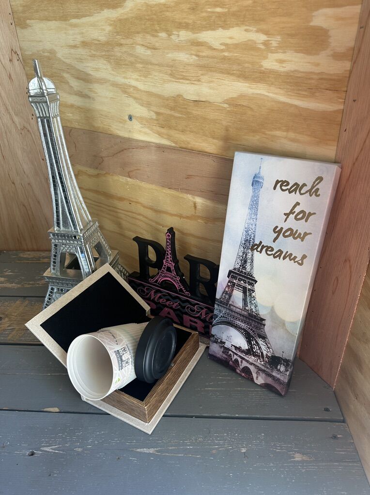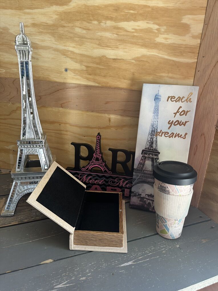 Paris Tower, hollow book, sign, picture, coffee cup, etc. really fun for your Paris fan in your life.