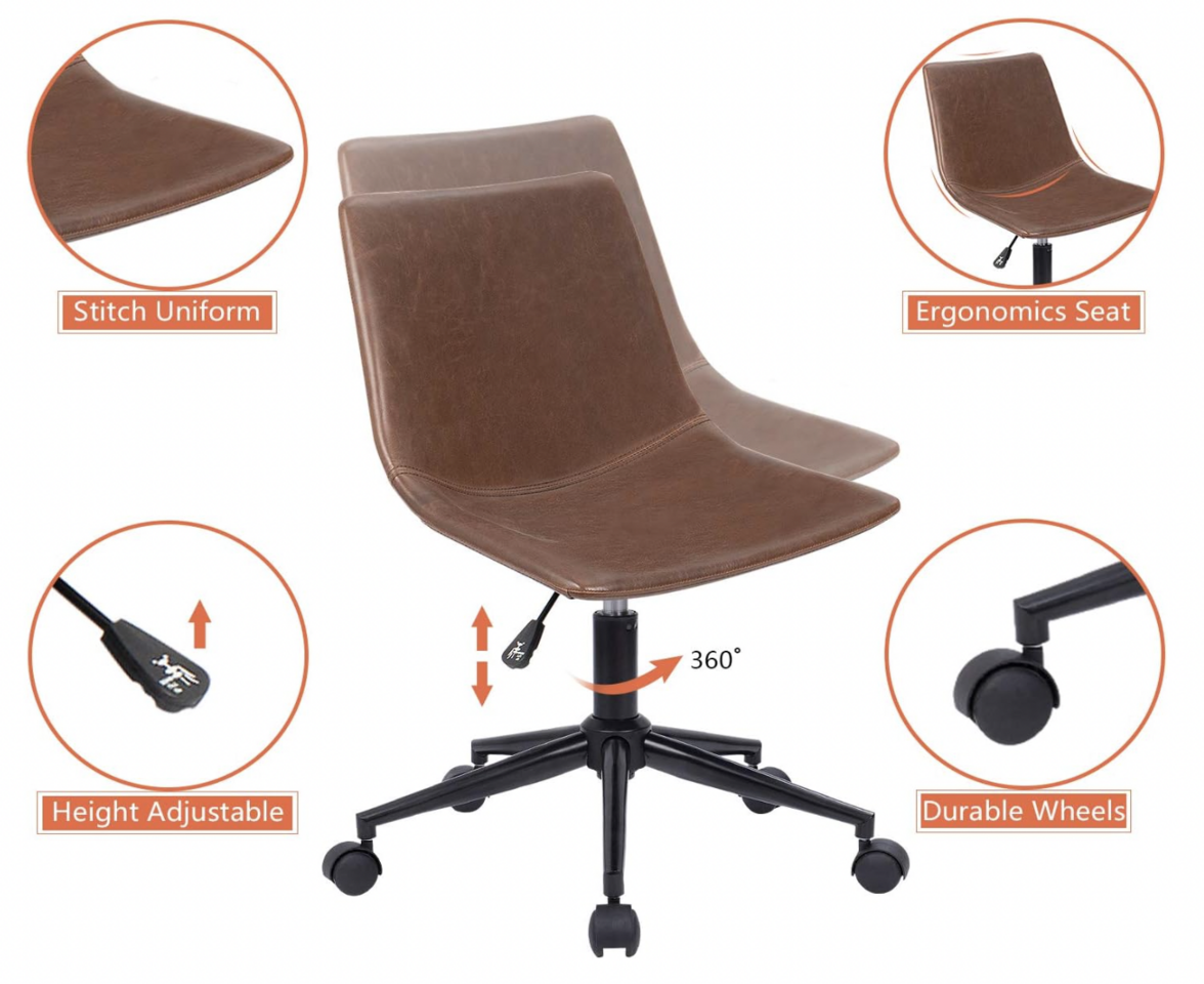 VenmoHomall Mid-Back Office Chair PU Leather Computer Desk Chair Adjustable Swivel Task Chair Armless (Brown)