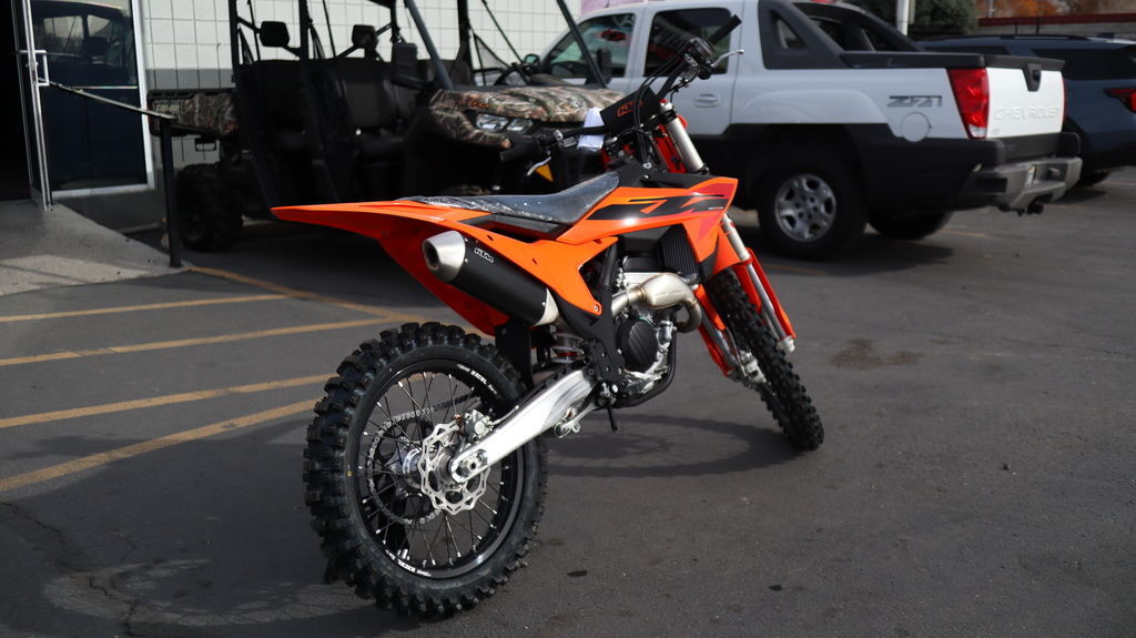 BLACK FRIDAY BLOWOUTNO FREIGHT OR SETUP 2025 KTM 250 SX-F The 2025 KTM 250 SX-F is a truly user-friendly package engineered to satisfy all riders, from novice to pro. But don't for one second thing that makes it compromised - it is undisputedly READY TO RACE at any level. Delivering a power punch, and an optional electronic uppercut in reserve, the 2025 KTM 250 SX-F is ready to take on the 250 cc class and deliver a knock-out. Features may include: BEFORE THE GATE CLICK INTO ACTION Easy Suspension Adjustment As always, the suspension boasts an easy tool-free setup at both ends, ensuring you chase down the podium in total control. On the rear, a hand-adjustable dual compression control allows riders to adjust high- and low-speed settings in a matter of seconds. The forks on the front end are also easily adjusted thanks to hand-adjustable clickers on the bottom of the fork shoe and top cap. BREATHE EASY Air filter box Designed to provide maximum airflow, the air filter box is designed with precisely positioned inlet ducts aimed at preventing air deformation and maintaining filter protection. The Twin Air filter and air filter support design feature a simple fail-proof mounting system for safe and accurate filter installation, ensuring the air filter is easily accessed, without tools, by removing the left side panel, for easy track-side maintenance. A vented air filter box cover is also included for all SX and SX-F models in the by-pack. LESS FOCUS ON THE TOOL, MORE FOCUS ON THE TRACK Serviceability The 2025 KTM SX and SX-F range is engineered and designed to provide riders with easy-to-access service parts, as well as suspension adjustability. This allows faster track-side and off-season maintenance, as well as making motocross more accessible for novice riders without pit crews. START STRONG UNMATCHED PERFORMANCE More Usable Power Weighing in at a lightweight 26.11 kg, this mid-weight powerhouse churns out a remarkable payload, making it the undisputed performance leader in the 250 cc 4-stroke class. The engine in the 2025 KTM 250 SX-F has also been carefully designed and tuned to best suit the performance and handling characteristics of the overall package, bumping up power in the mid-range and the top-end. DROP THE CLUTCH Launch Control & Quickshifter Launch control, ENGAGED! Designed for the holeshot, the 2025 KTM SX-F range comes standard with launch control and Quickshifter function, allowing for fast upshifts without using the clutch. Launch control is easily engaged by pressing the traction control and Quickshifter buttons simultaneously and works by limiting the amount of power to the rear wheel, improving traction, and preventing loss of control under hard acceleration. Meanwhile, the Quickshifter function means you can bang through from 2nd to 5th gear with your focus solely on the first corner. TOTAL TRACTION Selectable Maps + TC The map select switch on the 2025 KTM SX models features a simpler design, allowing for easier functionality in switching between 2 engine maps. Map 1 provides a more linear power curve. while map 2 punches all-out with aggressive throttle and explosive power. Luckily, Traction control is easy toggled to an on or off position from the same switch, ensuring maximum traction and a distinct advantage in wet or muddy conditions. CALM UNDER FIRE SLEEKER FOR YOU TO SCRUB CLEANER Absolute Control Get ready for a full-on berm assault. The 2025 KTM SX and SX-F machines have received major frame updates directly from Factory Racing efforts.