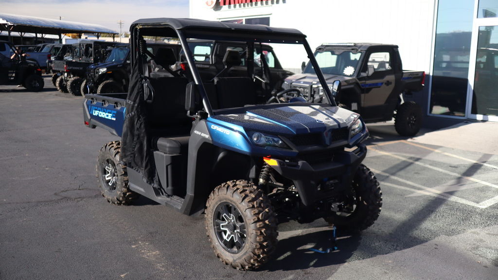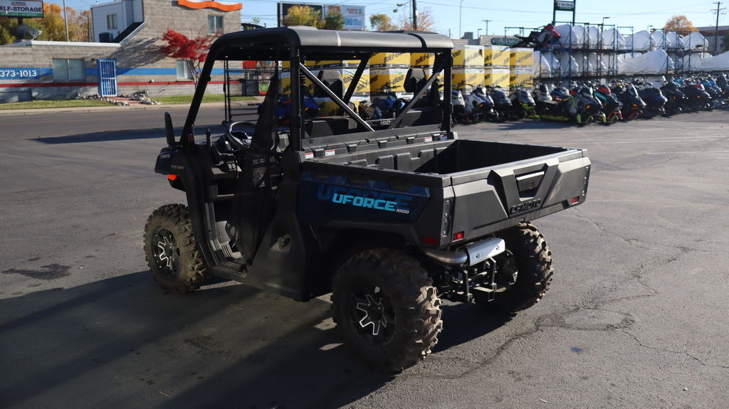 NO FREIGHT OR SETUP 2025 CFMOTO UFORCE 1000 Built to get stuff done, the UFORCE 1000 delivers on capacity and power. You get a roomy bench seat for three adults, a 1,000-lb. capacity gas-assisted tilting cargo box, a 10.6-gallon fuel tank, plus a high clearance suspension. ‘Nuff said. Features may include: 963cc V-Twin The 963cc V-twin features eight valves and a single overhead camshaft (SOHC). With electronic fuel injection (EFI) and efficient liquid cooling, this engine packs a punch, delivering an impressive 71 hp and exceptional medium and low-speed torque. It gives you a towing capacity of over 2500 pounds. Pulse™ Digital Display The TFT (thin film technology) color display keeps you tuned into an array of engine vitals and comes with a Bluetooth call indicator. 1000 Lb. Capacity Cargo Box In addition to its large capacity, the cargo box is equipped with a nitrogen gas-assisted dump box, which makes it easy to unload cargo quickly and efficiently. Suspension System The combination of a front and rear double wishbone independent suspension with double-row tapered roller bearings and variable pitch hydraulic spring shocks enables you to handle rough terrain with improved comfort, more stability, and greater load-bearing capacity.