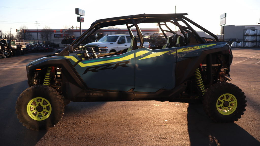 PROVOPRICE INCLUDES STREET KIT 2025 Polaris® RZR Pro XP 4 Ultimate Push Your Limits on Tough Forest Trails Experience unparalleled performance for fast-paced rides on wooded trails and tight terrain. Features may include: A Bold New Design Show up and stand out with the bold new design of RZR Pro XP—enhancing both style and performance to take on the off road. Refined Interior Winning starts from within, and RZR Pro XP is no exception. Its interior is meticulously designed with more comfort and convenience, empowering you to go the distance and take the prize. All-Out Trail Performance Experience next-level exhilaration with cutting-edge features designed to conquer tight terrain, including narrow wooded trails and windy forest paths. Trail-Optimized Technology Take your ride up a notch with trail-ready technology. From advanced connectivity to groundbreaking sound, RZR Pro XP features cutting-edge tech to unlock more potential off road. NEW! Fresh Cabin Air Intakes NEW! Dual-sweep Analog Dials w/ 4" LCD Screen 64" Width, 125" Wheelbase 181 HP Turbocharged Engine Xtreme Performance Isolated True On-Demand AWD/2WD 22" Usable Travel NEW! Animated RZR Fang Accent Lighting NEW! Rockford Fosgate® Stage 4 Audio NEW! Sport Poly Roof RIDE COMMAND Off-Road Mapping Integrated into a 7" Display Rear Camera DYNAMIX Semi-Active Suspension 2.0 FOX 2.5 Podium Live Valve Shocks Telescoping Steering Wheel & Button Controls High Clearance Radius Rods Front Bull Bumper Fold Flat Rear Storage 4-Pt. Harness