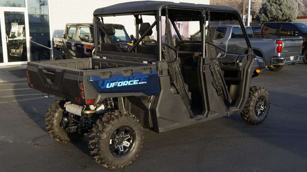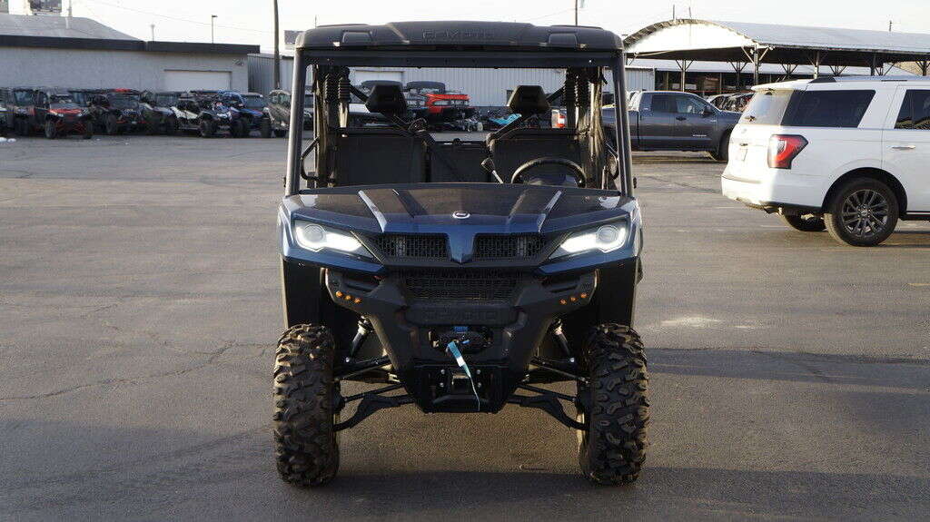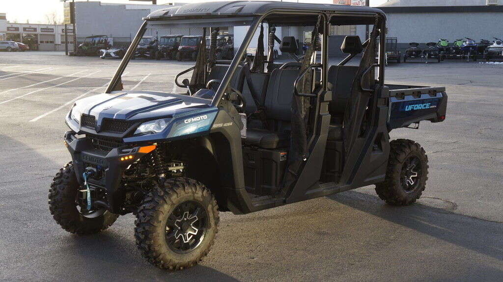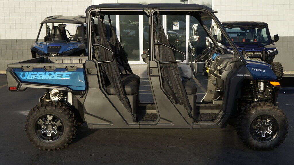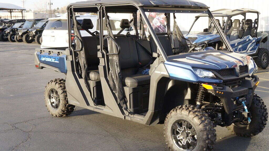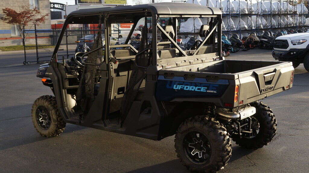 2025 CFMOTO UFORCE 1000 XL Big jobs call for a big UTV. You could pay much, much more for a 6-seater. But once again, CFMOTO brings you this fiscally superior option. And this crew transport comes nicely equipped. You even get the 4,500 lb. winch, standard. Features may include: Seating for Six People An ergonomic bench seat includes a center console featuring two cupholders. Fold it up to create room for three adults. A pull-out toolbox under the seat stores gear you don’t go anywhere without. A second bench seat increases rider capacity to six. Bring the whole crew. 1000 Lb. Capacity Cargo Box Unload whatever you’re hauling easily with a nitrogen gas-assisted dump box. Handy tie-down points come standard on the cargo box. 4,500 Lb. Winch with Synthetic Rope This heavy-duty winch features synthetic rope, a lighter, stronger, safer alternative to steel cable. What’s more, it’s far easier to handle. Especially when you’re working fast. 963cc V-Twin The 963cc V- twin features eight valves and a single overhead camshaft (SOHC). With electronic fuel injection (EFI) and efficient liquid cooling, this engine packs a punch, delivering an impressive 71 hp and exceptional medium and low-speed torque. It gives you a towing capacity of over 2500 pounds.