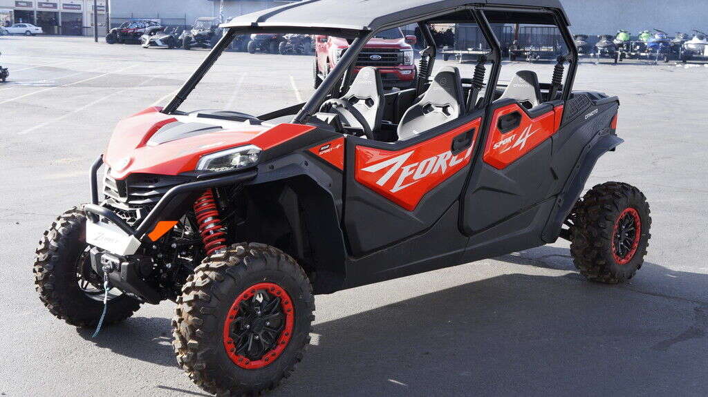 2025 CFMOTO ZFORCE 950 Sport 4 With four comfortable bucket seats, this performance side-by-side is built for a group adventure. Power and performance, plus all the features you need, deliver an exhilarating off-road experience a whole team of friends or family can enjoy. Features may include: Electronic Power Steering Experience unmatched steering precision with the ZFORCE Sport 4’s electronic power steering (EPS) system. The variable-assist EPS offers optimal steering feedback across all conditions, instilling confidence and control. Dual-mode EPS adapts to your vehicle’s power mode for enhanced stability on challenging terrain. Protective Half Doors Safety takes priority with the ZFORCE Sport 4, featuring half side doors to ensure your protection during every adventure. Aluminum Alloy Wheels The ZFORCE Sport 4's aluminum alloy wheels and durable tires make a statement. Not only do they conquer obstacles, but they also enhance the overall aesthetic of your off-road companion. Wide Stance and Long Wheelbase Command attention and dominate trails with the ZFORCE Sport 4's sport stance, spanning 60” across. The combination of the wide stance and extended 120” wheelbase enhances stability, enabling you to navigate with precision and control.