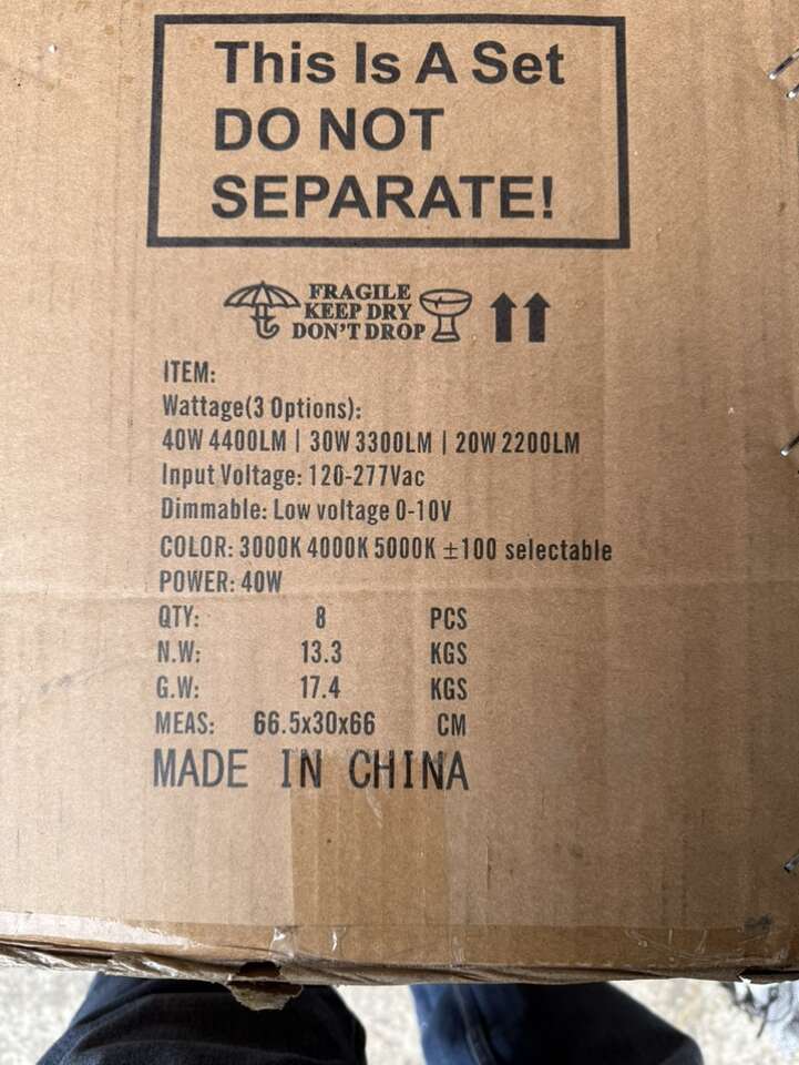 Wattage(3 Options): 40W 4400LM | 30W 3300LM | 20W 2200LM Input Voltage: 120-277Vac Dimmable: Low voltage 0-10V COLOR: 3000K 4000K 5000K 100 selectable POWER: 40W