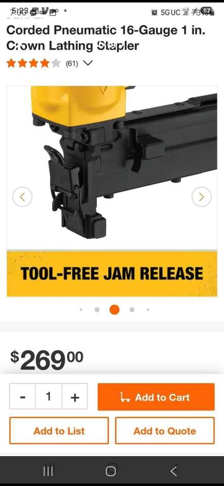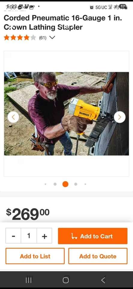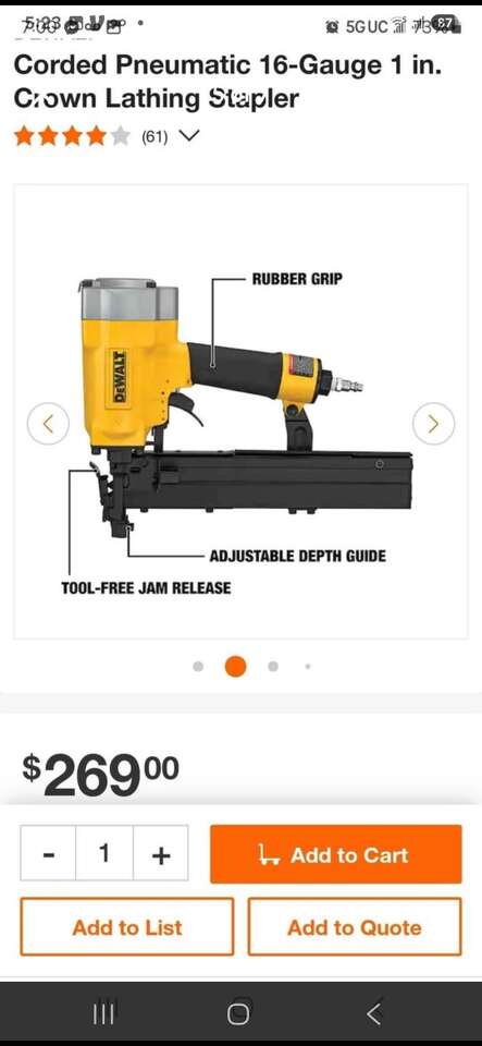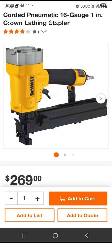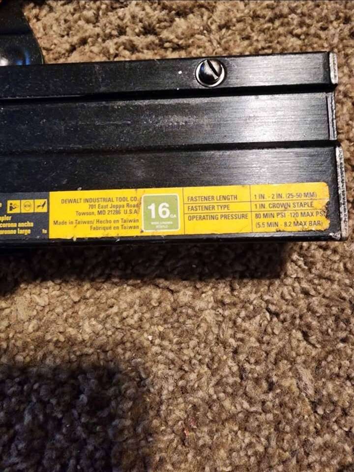 ZelleUsed Dewalt Corded Pneumatic 16-Gauge 1in Crown Lathing Stapler. This stapler is used, but works great. I have a compressor if you would like to test it. Model Number DW451S2