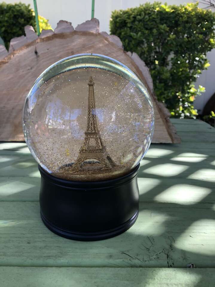 ZelleBeautiful Eiffel Tower snow globe, golden glitter inside, more than one available. Text is preferred (801)688-6546