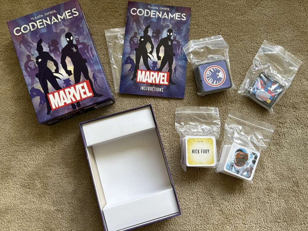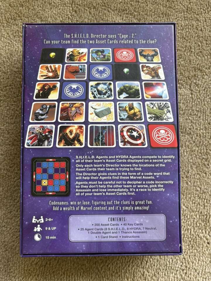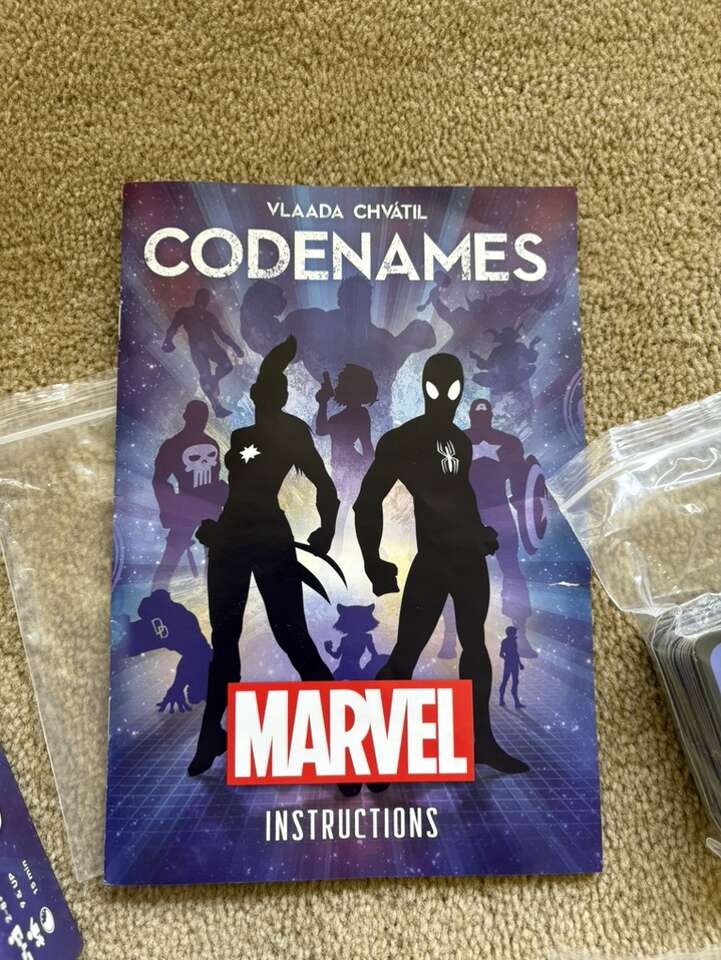 COMPLETE Codenames: Marvel Edition. Top Secret Co-op Game by Vlaada Chvatil, USAopoly, 2017. Award-winning game. 2-8+ players, ages 9+. Complete, no missing pieces, excellent condition. Text only. Cash or Venmo.