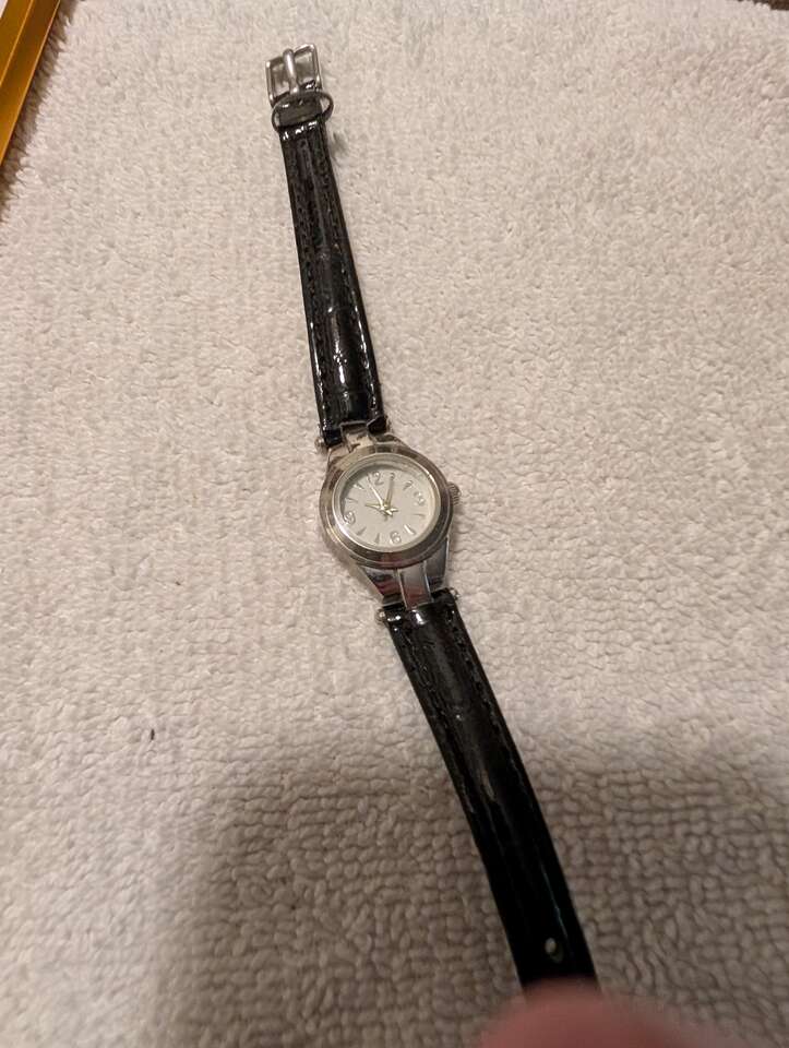 PayPalThis ladies wristwatch features a Japanese movement and a new battery, known for their precision and reliability. The leather wristband adds a touch of elegance and sophistication to the design. The plastic element may refer to a protective cover or housing for the watch components, ensuring durability and longevity. Perfect for women looking for a stylish and functional timepiece that combines quality craftsmanship with a sleek design. 10 dollars or best offer. Will ship world wide.