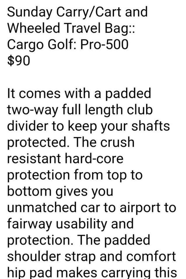 Sunday Carry/Travel Golf Bag-- $85-- Description in Photos-- Thanks for stopping by-- No returns or refunds.