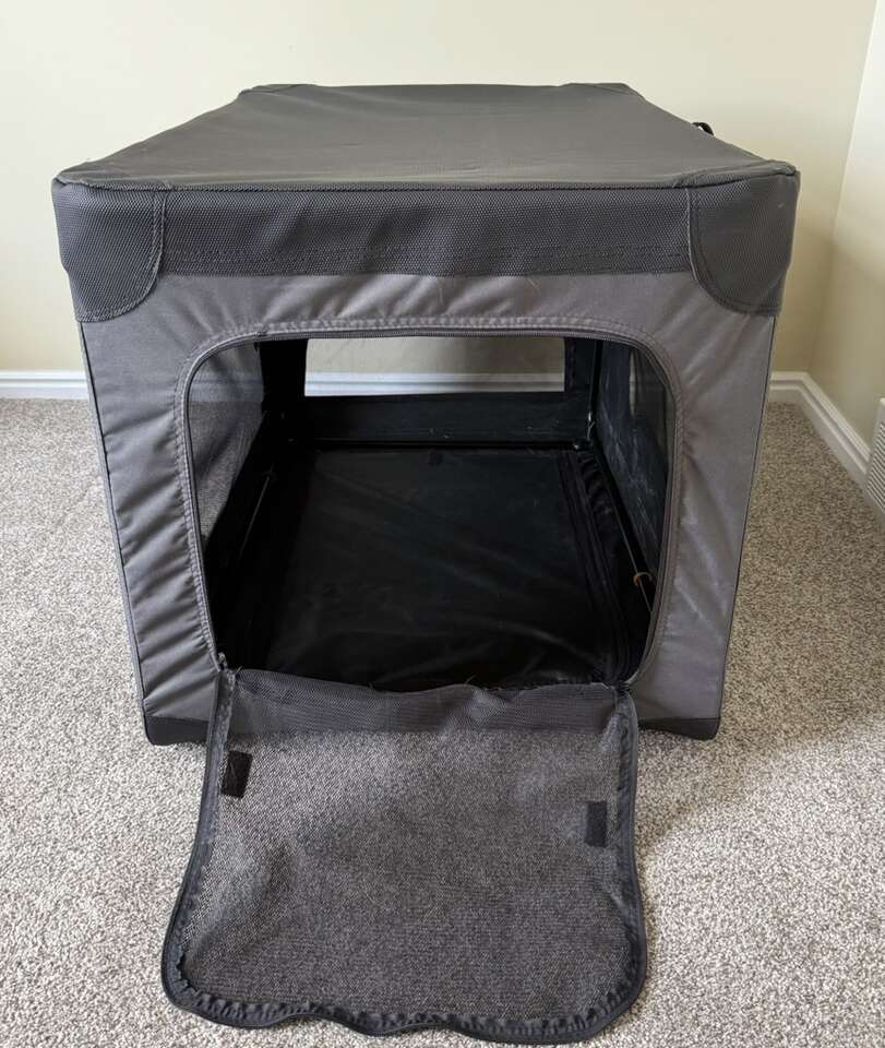 VenmoTop Paw indoor/outdoor crate Two doors and top opening – multiple ways Easily foldable for road trips and storage 24” H x 23 ½ x 35” Great condition