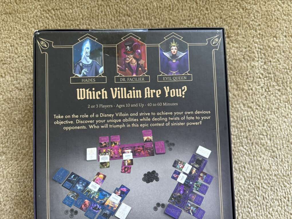 NEW (sealed box) Disney Villainous: Wicked to the Core. Which villain are you? 2-3 players, age 10+. Can be played as a stand-alone game, or mixed with other villainous games. Disney, Ravensburger, 2019. New, unplayed condition. Text only. Cash or Venmo. Discount on multiple items.