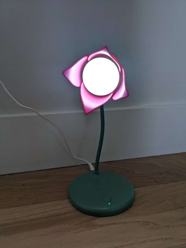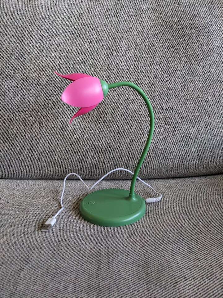 Works perfectly! The lamp is adjustable and as seem in the photos the lamp is approximately 9.5 inches tall. Base diameter measures a bit less than 5 inches. Message or text any time. Cash only please. I can meet at the Kaysville Library (Tuesdays or Fridays) or the South Weber Maverik. Please see my other ads. Thanks!