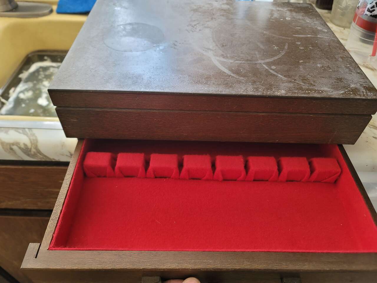 This was my grandmother's 12 piece Dirilyte Tuscany flatware set. All 12 pieces of each are there, the case is intact, These have been sitting unused for years, and need a little cleaning. $120 o.b.o